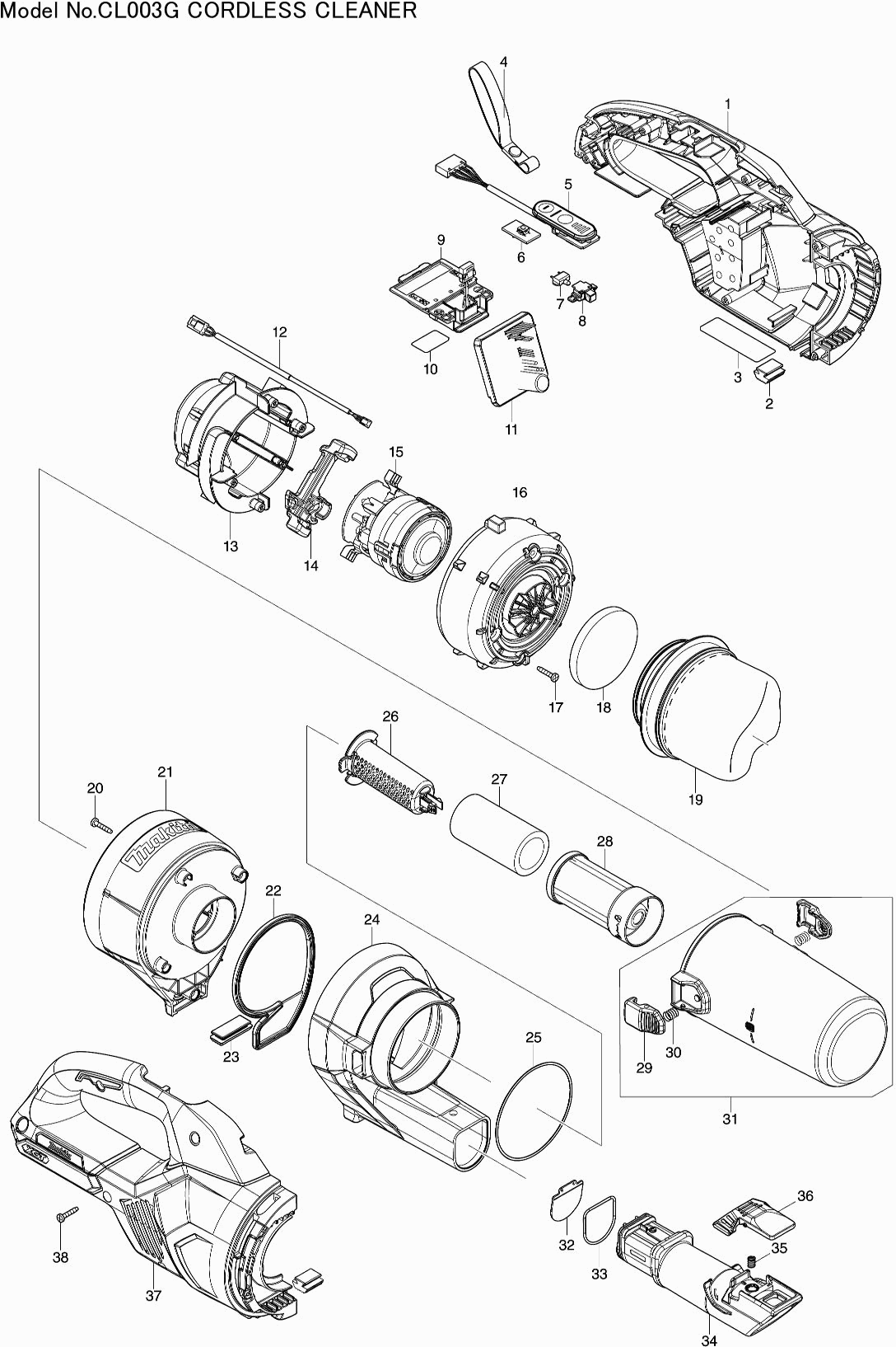 Liste de pièces de rechange des Makita CL003G
