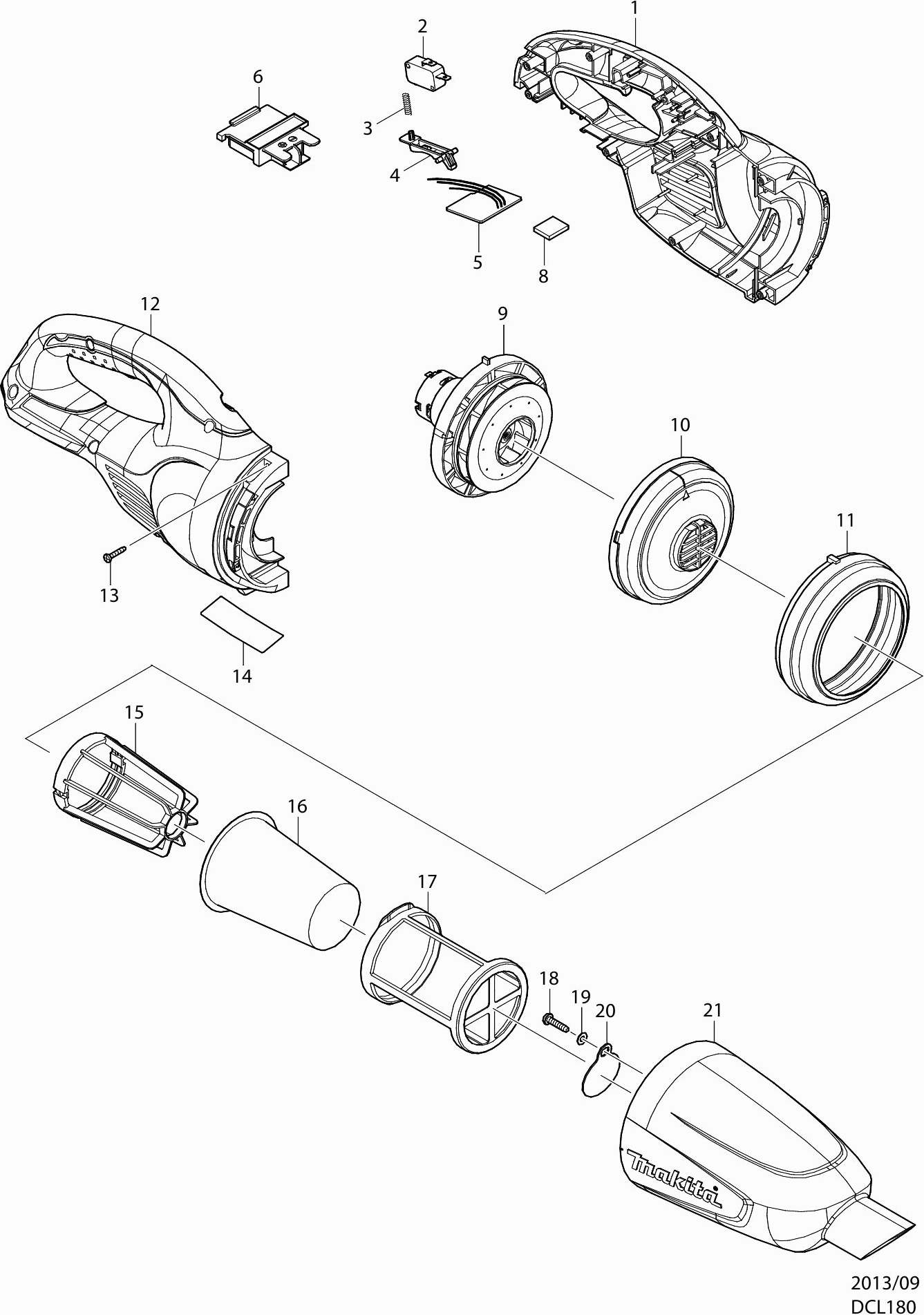 Liste de pièces de rechange des Makita DCL180