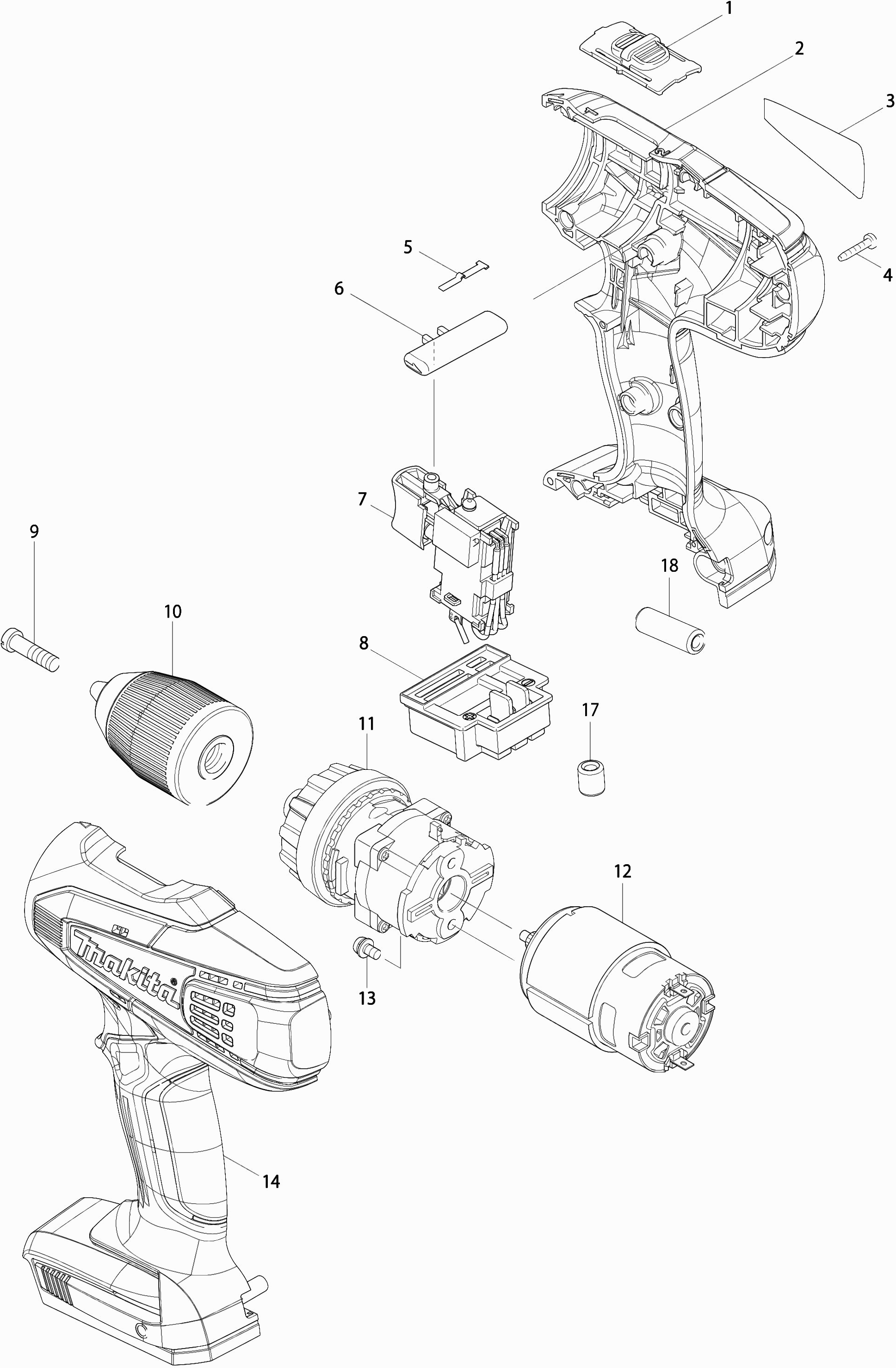 Vous trouverez ici toutes les pièces et dessins disponibles du 'Makita DF457D'. De là, vous pouvez commander directement toutes les pièces souhaitées. De nombreuses pièces doivent être commandées auprès du fabricant, selon la marque, cela prend une à quatre semaines. Toutes les informations dont nous disposons se trouvent sur notre site Web, nous ne pouvons pas vous conseiller sur ce dont vous avez besoin, pour cela vous devrez retourner la machine pour réparation. Veuillez noter ce qui suit lors de la commande: