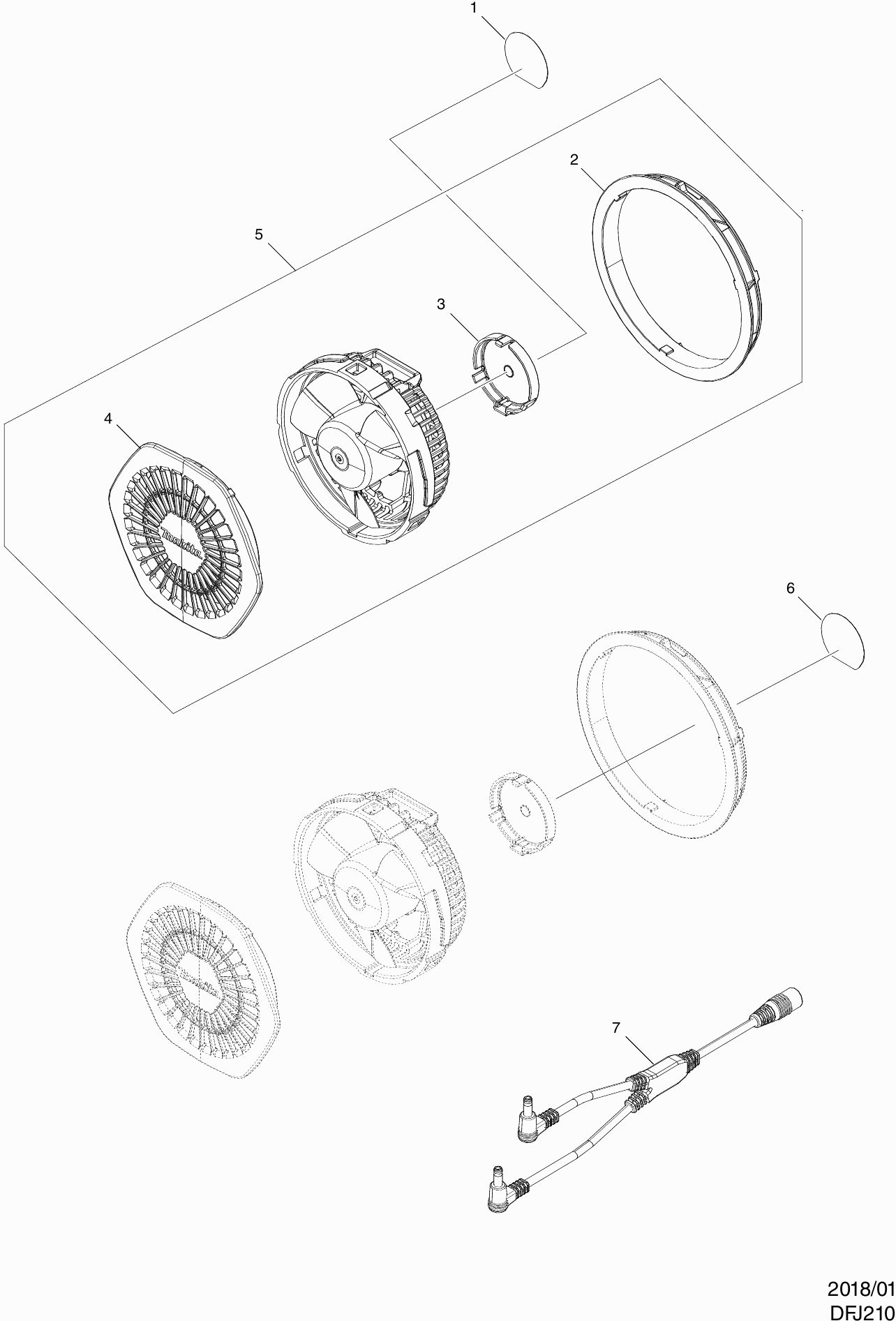 Liste de pièces de rechange des Makita DFJ210