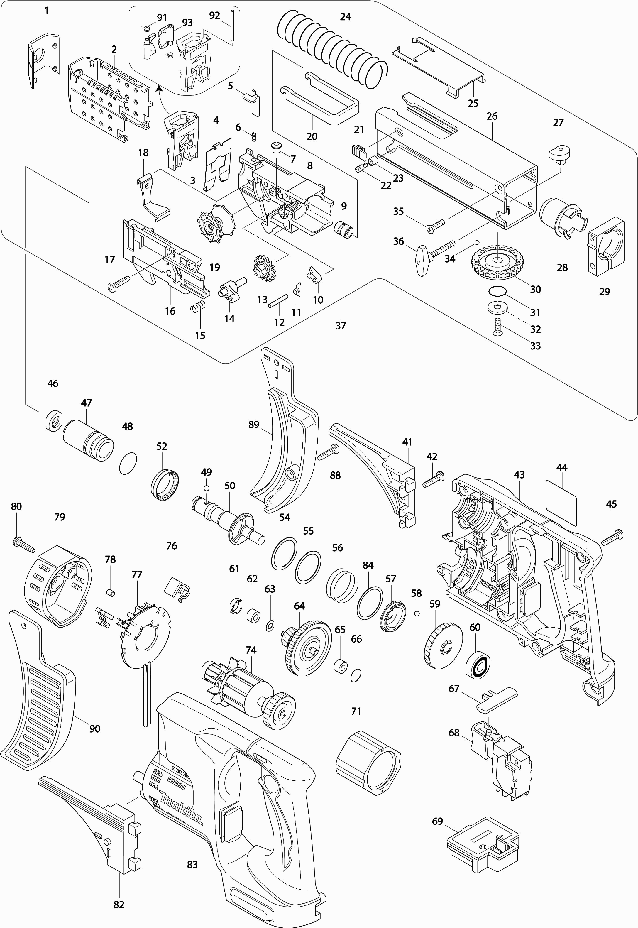 Vous trouverez ici toutes les pièces et dessins disponibles du 'Makita DFR540'. De là, vous pouvez commander directement toutes les pièces souhaitées. De nombreuses pièces doivent être commandées auprès du fabricant, selon la marque, cela prend une à quatre semaines. Toutes les informations dont nous disposons se trouvent sur notre site Web, nous ne pouvons pas vous conseiller sur ce dont vous avez besoin, pour cela vous devrez retourner la machine pour réparation. Veuillez noter ce qui suit lors de la commande: