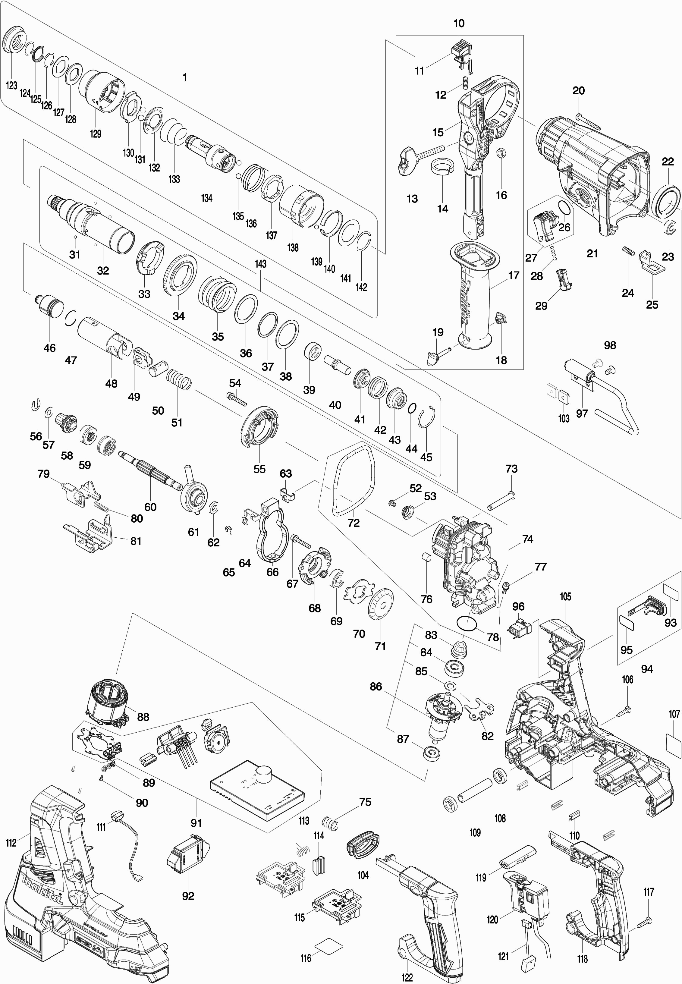 Vous trouverez ici toutes les pièces et dessins disponibles du 'Makita DHR283'. De là, vous pouvez commander directement toutes les pièces souhaitées. De nombreuses pièces doivent être commandées auprès du fabricant, selon la marque, cela prend une à quatre semaines. Toutes les informations dont nous disposons se trouvent sur notre site Web, nous ne pouvons pas vous conseiller sur ce dont vous avez besoin, pour cela vous devrez retourner la machine pour réparation. Veuillez noter ce qui suit lors de la commande: