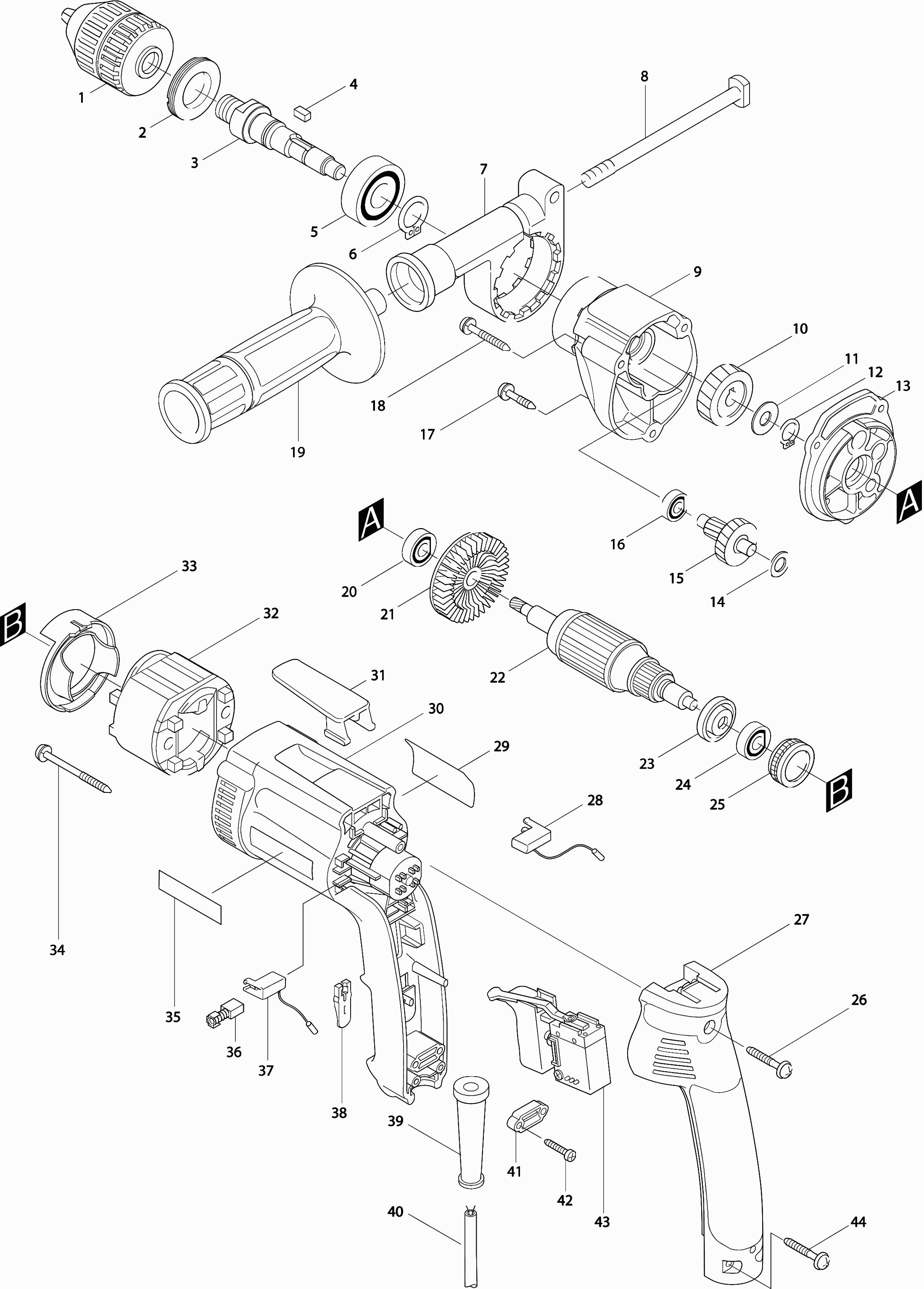 Vous trouverez ici toutes les pièces et dessins disponibles du 'Makita DP3003'. De là, vous pouvez commander directement toutes les pièces souhaitées. De nombreuses pièces doivent être commandées auprès du fabricant, selon la marque, cela prend une à quatre semaines. Toutes les informations dont nous disposons se trouvent sur notre site Web, nous ne pouvons pas vous conseiller sur ce dont vous avez besoin, pour cela vous devrez retourner la machine pour réparation. Veuillez noter ce qui suit lors de la commande:
