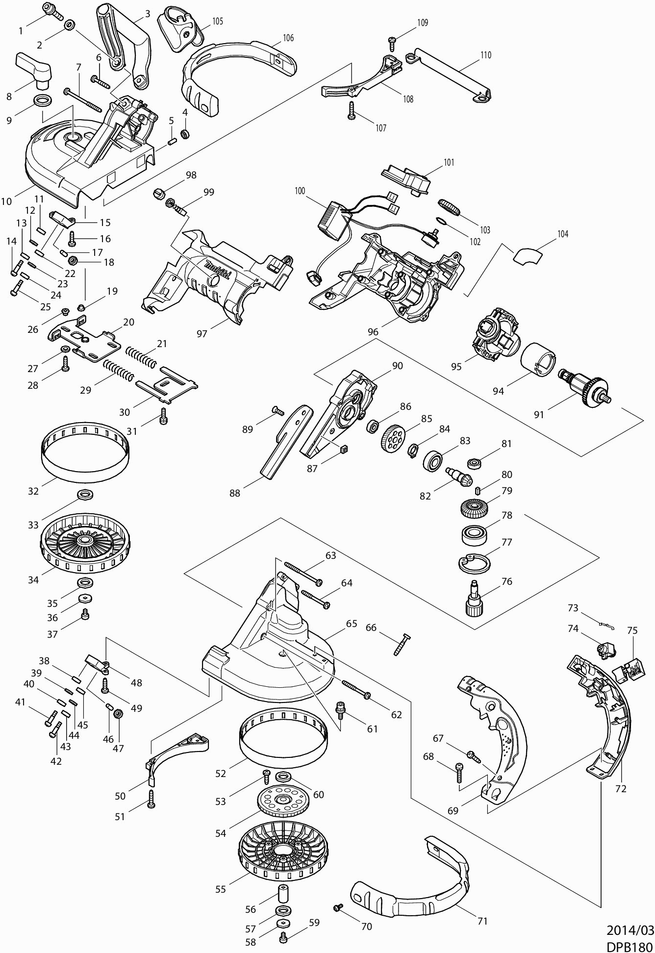 Liste de pièces de rechange des Makita DPB180