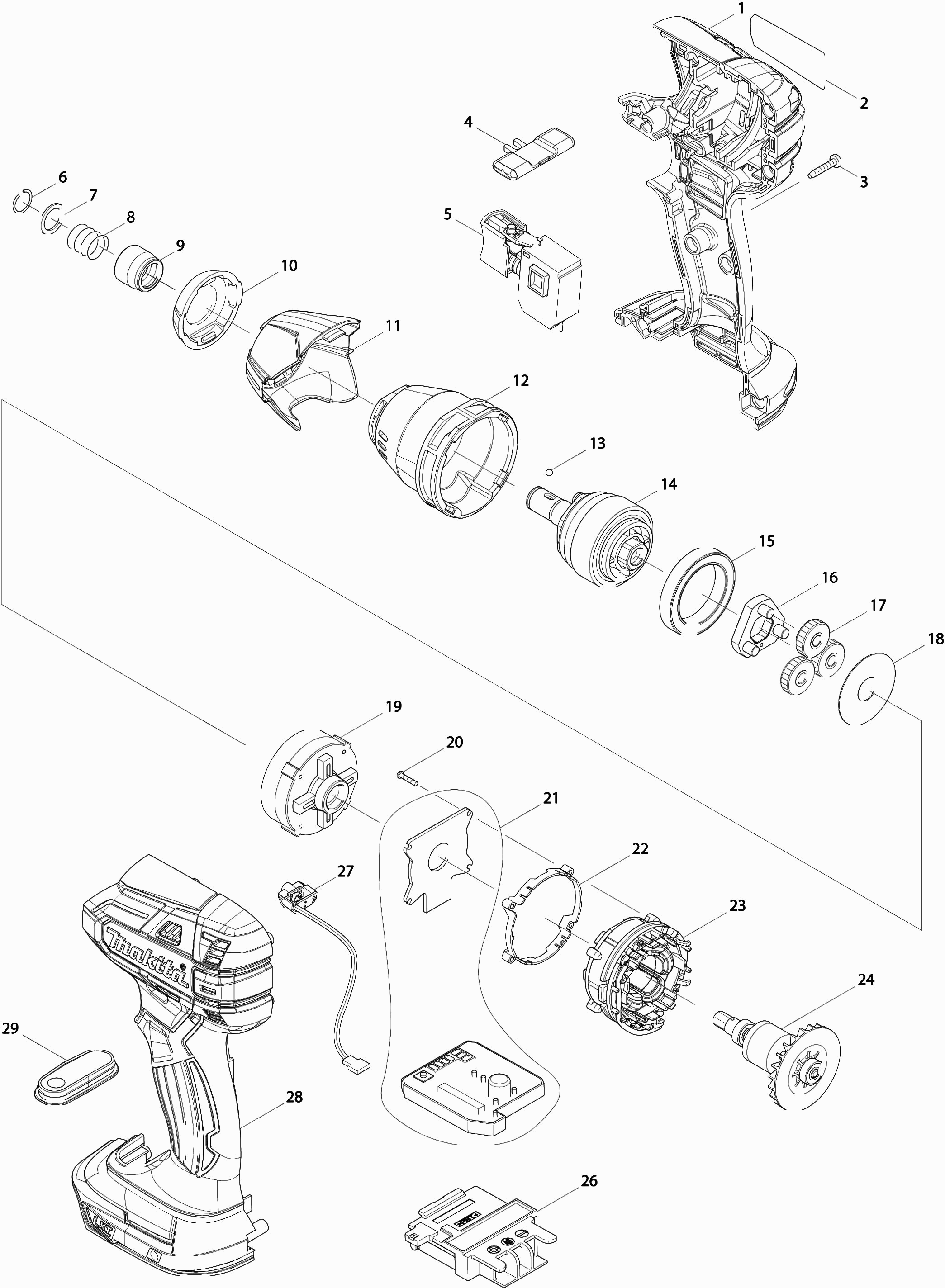 Vous trouverez ici toutes les pièces et dessins disponibles du 'Makita DTS141'. De là, vous pouvez commander directement toutes les pièces souhaitées. De nombreuses pièces doivent être commandées auprès du fabricant, selon la marque, cela prend une à quatre semaines. Toutes les informations dont nous disposons se trouvent sur notre site Web, nous ne pouvons pas vous conseiller sur ce dont vous avez besoin, pour cela vous devrez retourner la machine pour réparation. Veuillez noter ce qui suit lors de la commande: