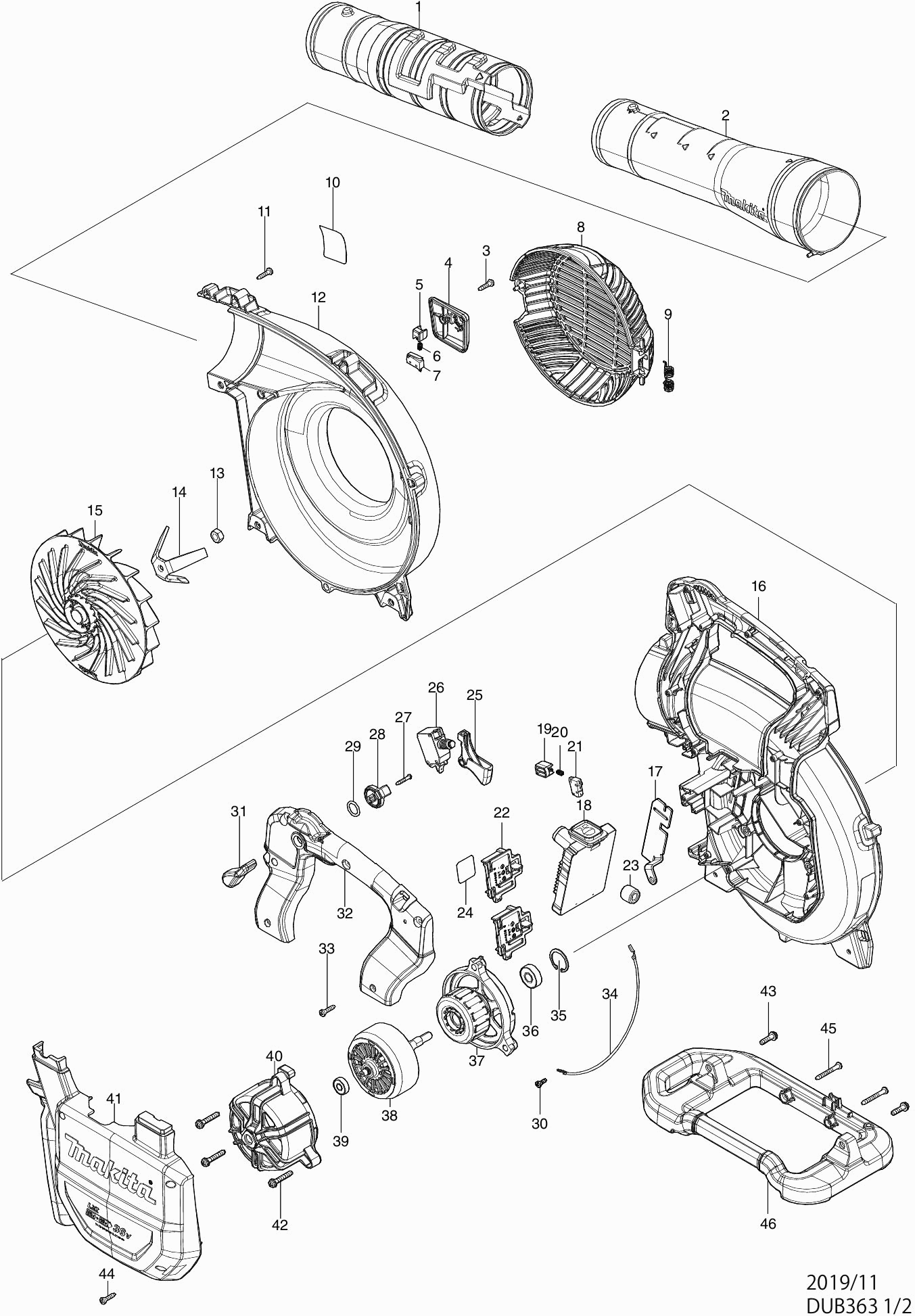 Vous trouverez ici toutes les pièces et dessins disponibles du 'Makita DUB363'. De là, vous pouvez commander directement toutes les pièces souhaitées. De nombreuses pièces doivent être commandées auprès du fabricant, selon la marque, cela prend une à quatre semaines. Toutes les informations dont nous disposons se trouvent sur notre site Web, nous ne pouvons pas vous conseiller sur ce dont vous avez besoin, pour cela vous devrez retourner la machine pour réparation. Veuillez noter ce qui suit lors de la commande: