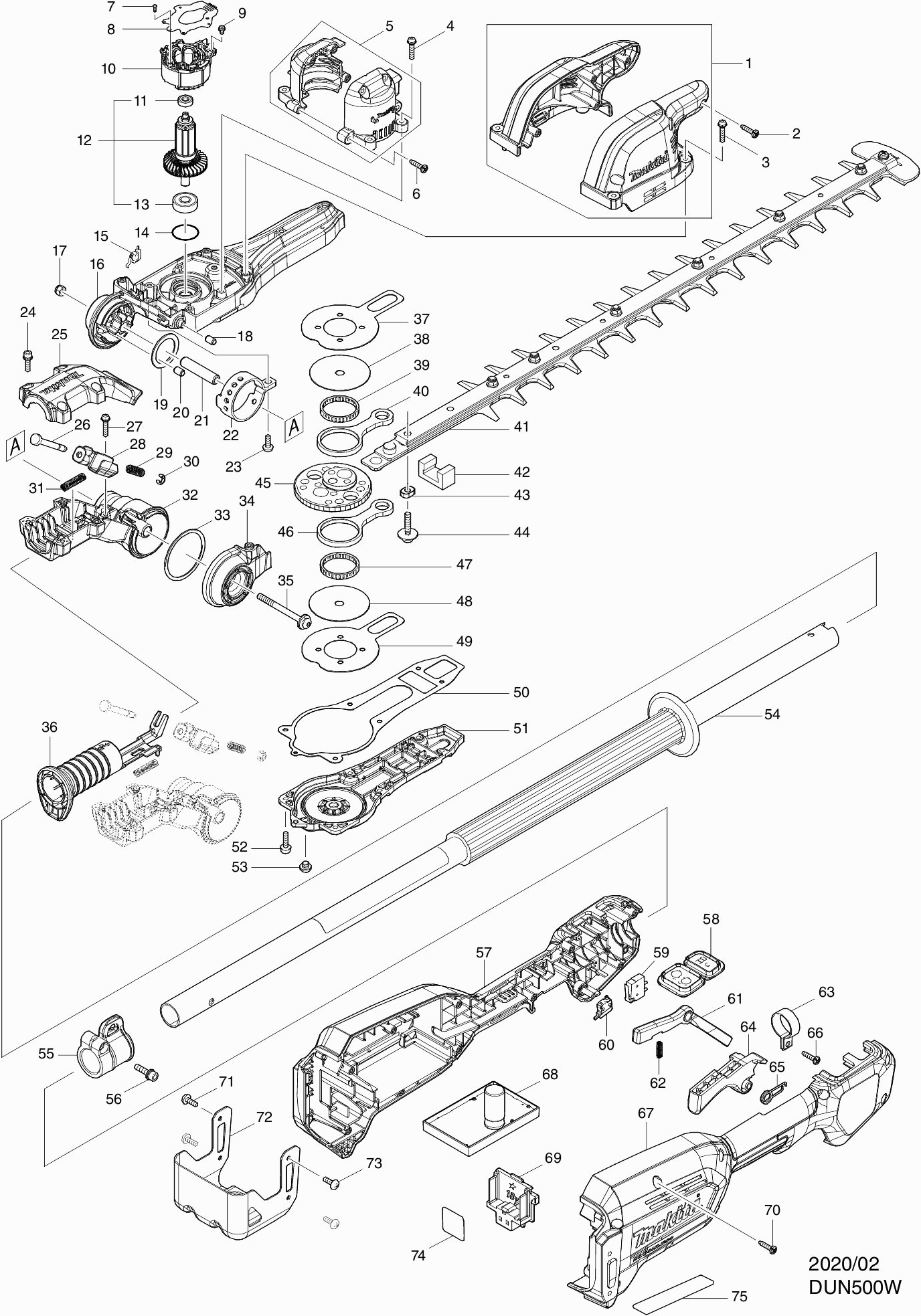 Liste de pièces de rechange des Makita DUN500W
