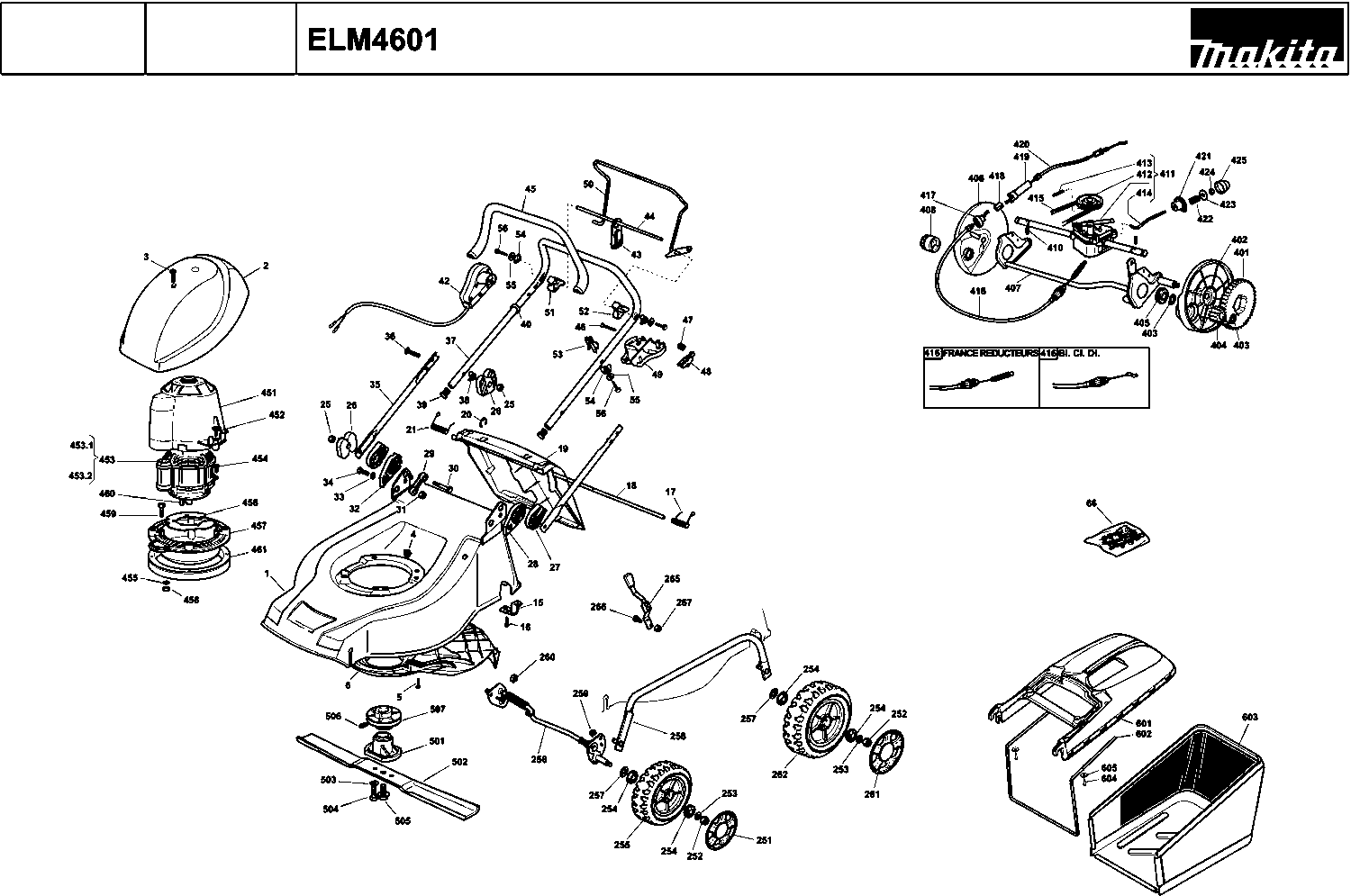 Liste de pièces de rechange des Makita ELM4601
