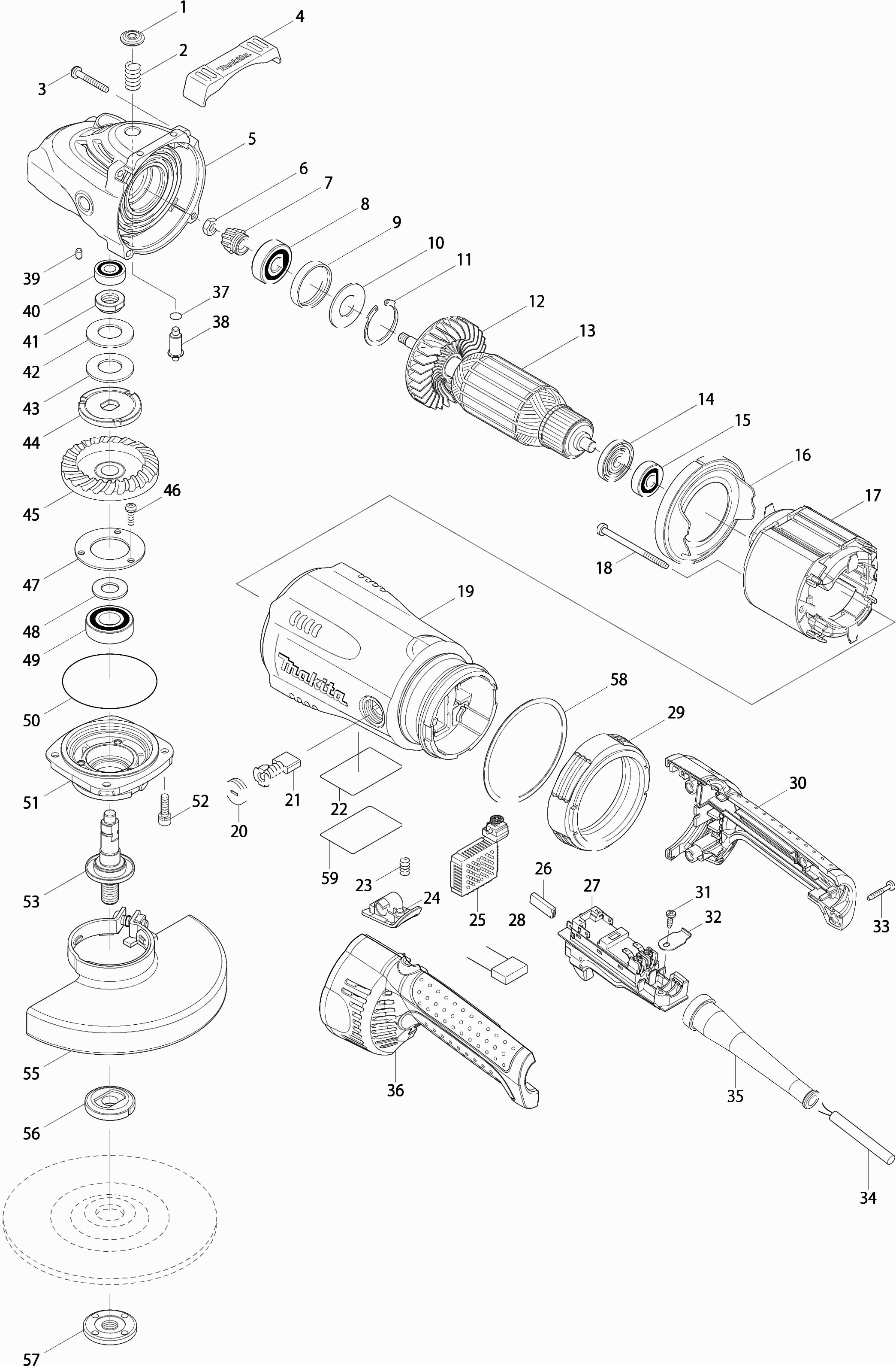 Vous trouverez ici toutes les pièces et dessins disponibles du 'Makita GA7040R'. De là, vous pouvez commander directement toutes les pièces souhaitées. De nombreuses pièces doivent être commandées auprès du fabricant, selon la marque, cela prend une à quatre semaines. Toutes les informations dont nous disposons se trouvent sur notre site Web, nous ne pouvons pas vous conseiller sur ce dont vous avez besoin, pour cela vous devrez retourner la machine pour réparation. Veuillez noter ce qui suit lors de la commande: