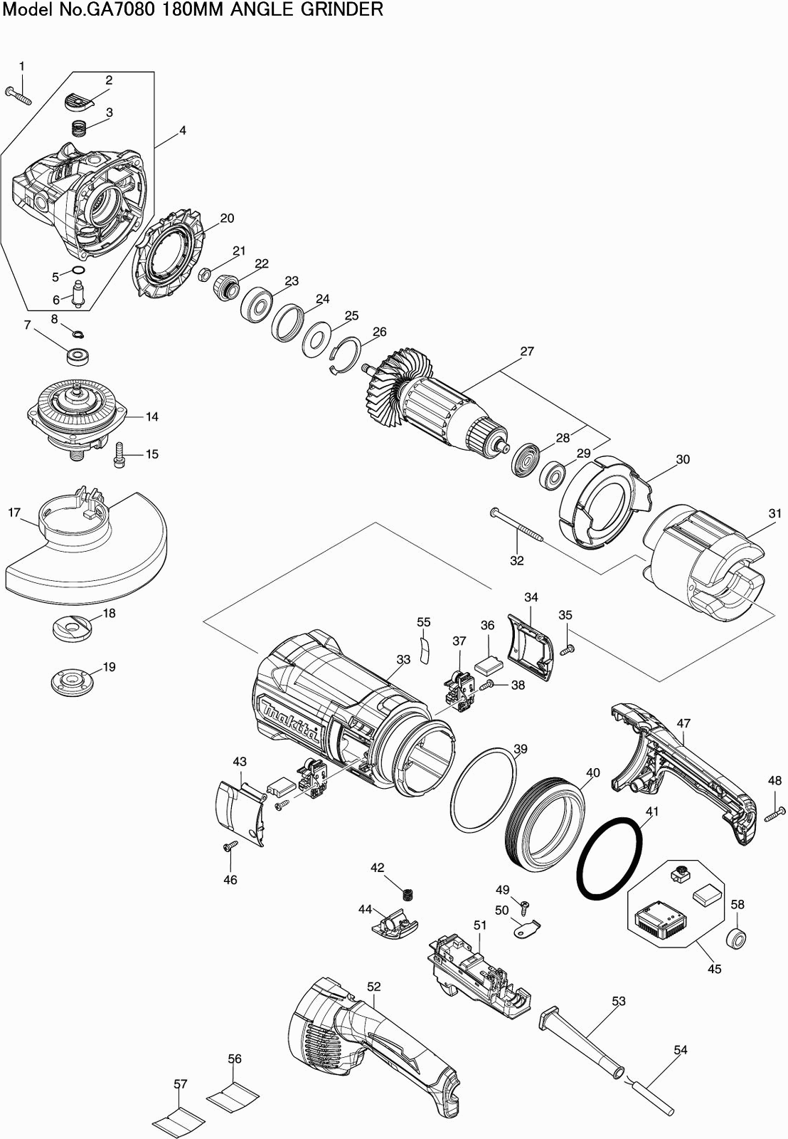 Liste de pièces de rechange des Makita GA7080