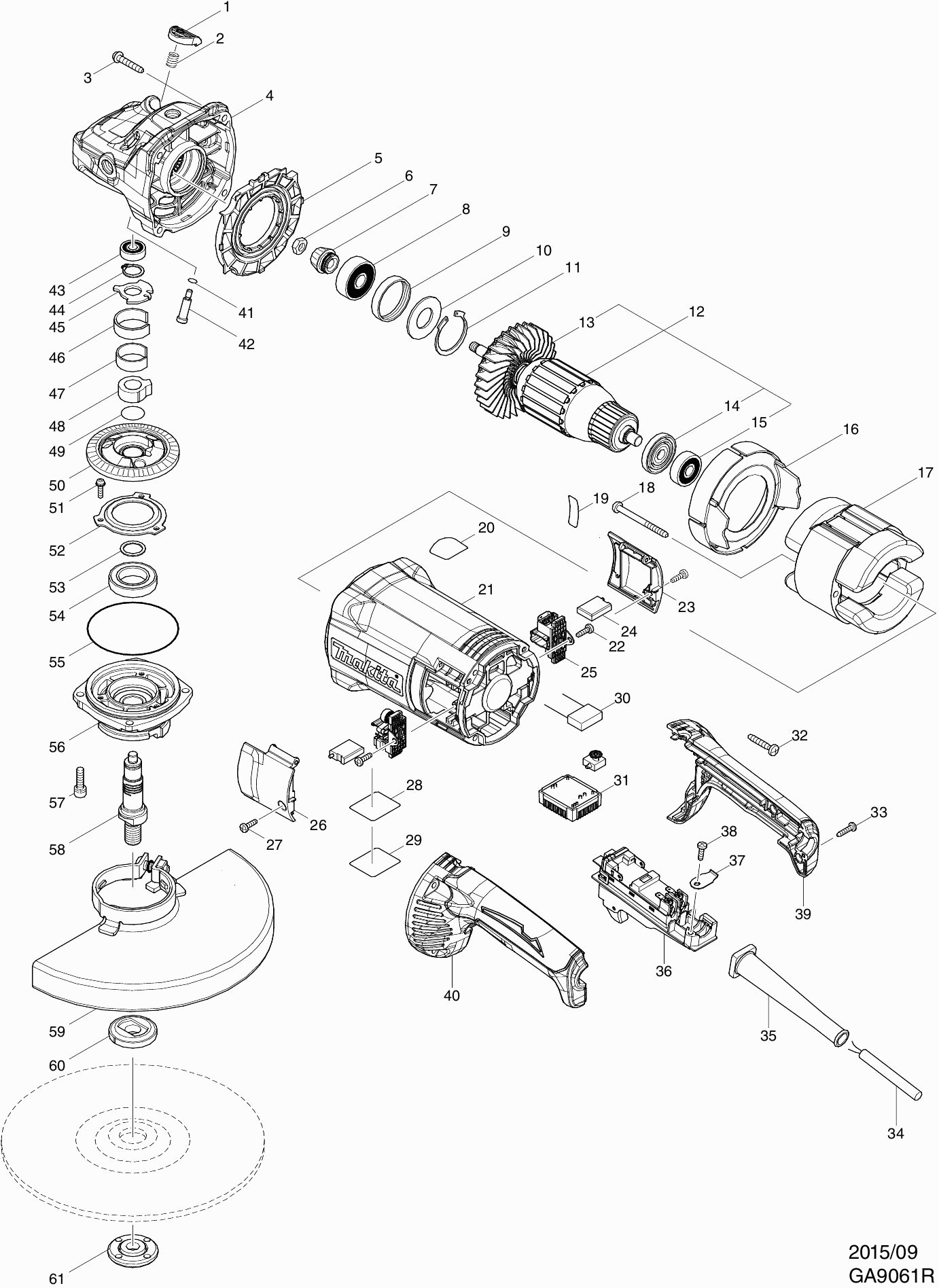 Liste de pièces de rechange des Makita GA9061R