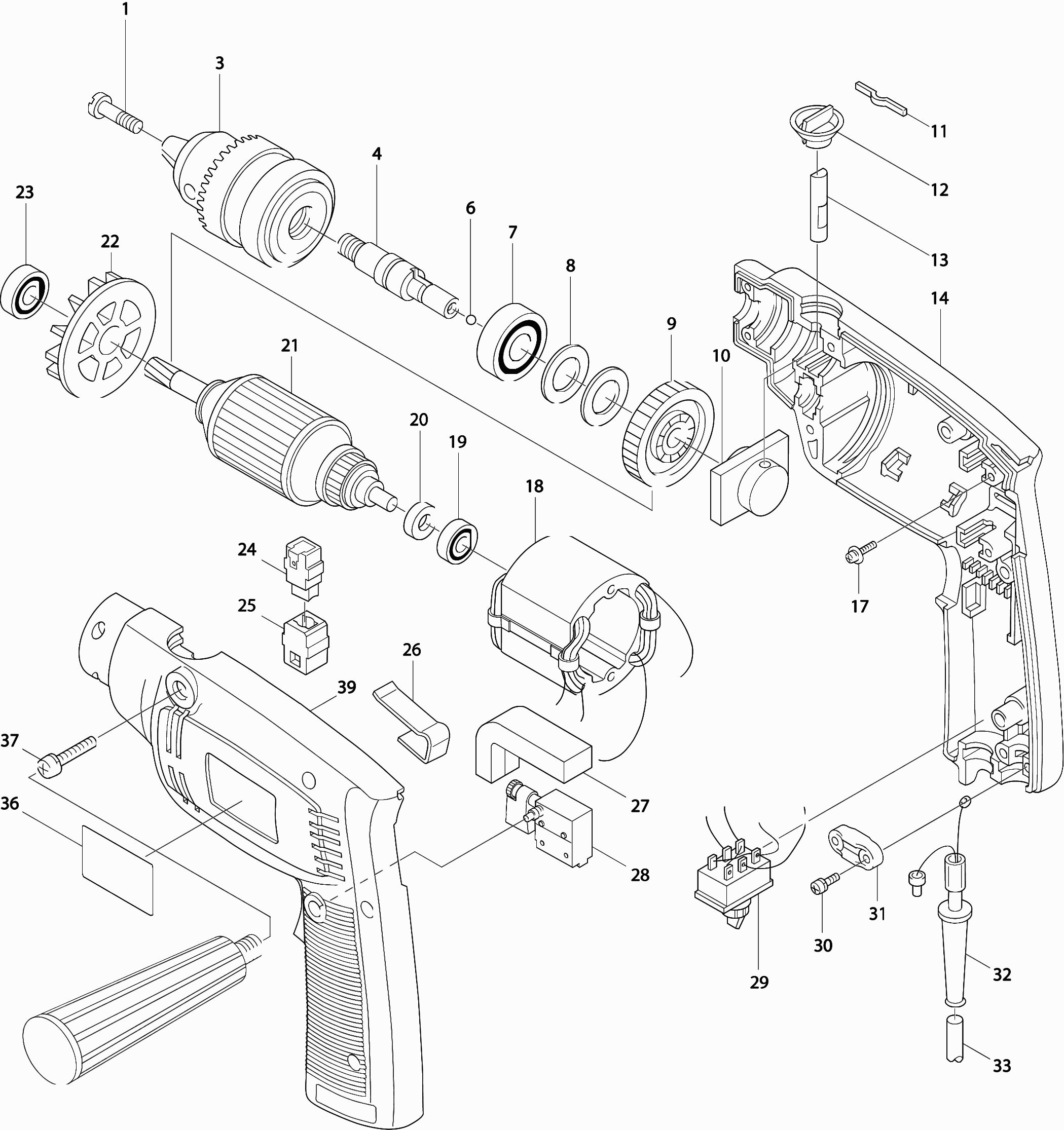 Vous trouverez ici toutes les pièces et dessins disponibles du 'Makita HP1300S'. De là, vous pouvez commander directement toutes les pièces souhaitées. De nombreuses pièces doivent être commandées auprès du fabricant, selon la marque, cela prend une à quatre semaines. Toutes les informations dont nous disposons se trouvent sur notre site Web, nous ne pouvons pas vous conseiller sur ce dont vous avez besoin, pour cela vous devrez retourner la machine pour réparation. Veuillez noter ce qui suit lors de la commande: