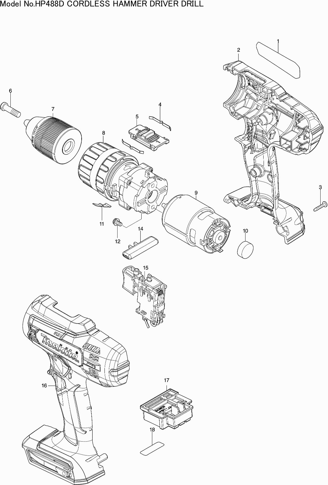 Liste de pièces de rechange des Makita HP488D