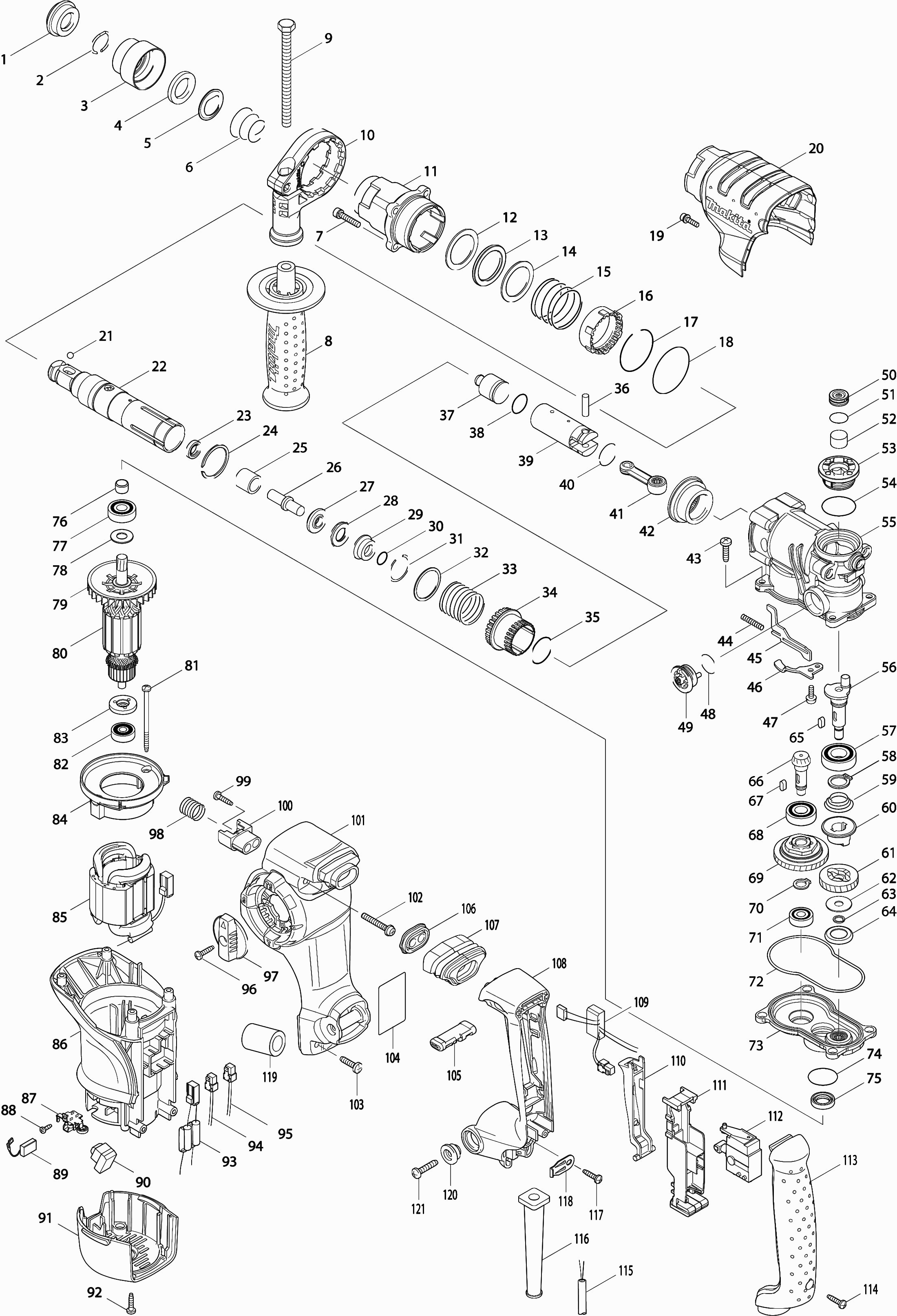 Liste de pièces de rechange des Makita HR2811F
