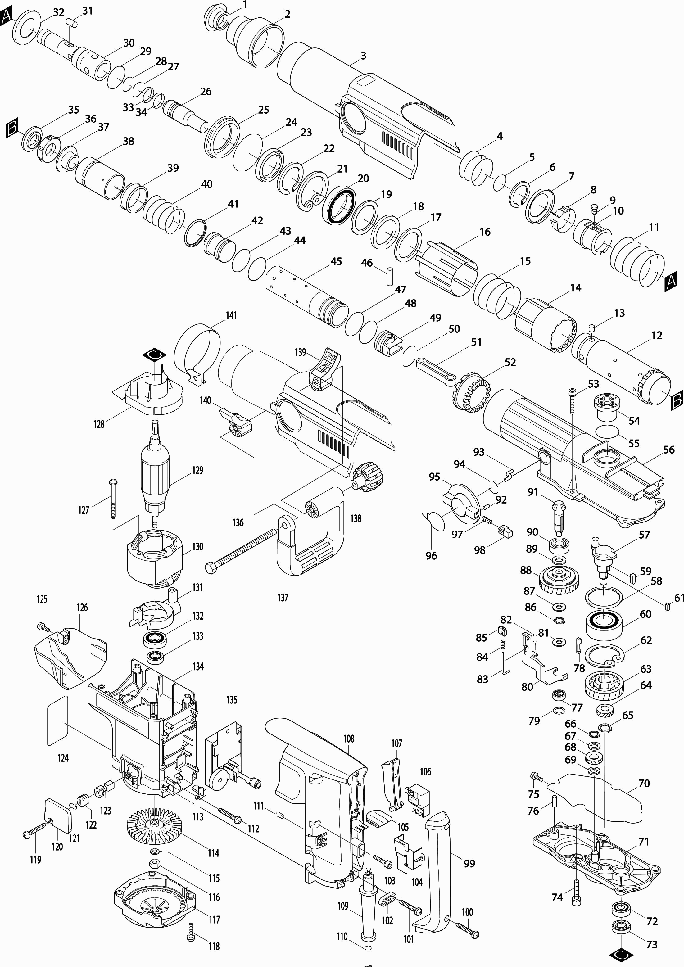 Vous trouverez ici toutes les pièces et dessins disponibles du 'Makita HR5001C'. De là, vous pouvez commander directement toutes les pièces souhaitées. De nombreuses pièces doivent être commandées auprès du fabricant, selon la marque, cela prend une à quatre semaines. Toutes les informations dont nous disposons se trouvent sur notre site Web, nous ne pouvons pas vous conseiller sur ce dont vous avez besoin, pour cela vous devrez retourner la machine pour réparation. Veuillez noter ce qui suit lors de la commande: