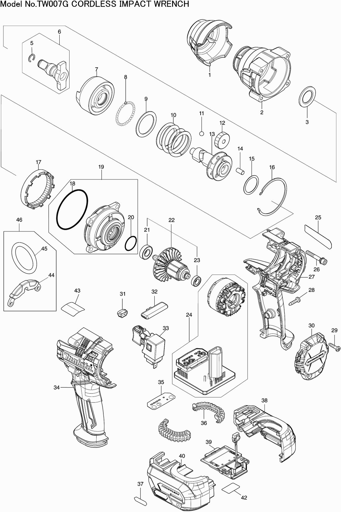 Liste de pièces de rechange des Makita TW007GD201