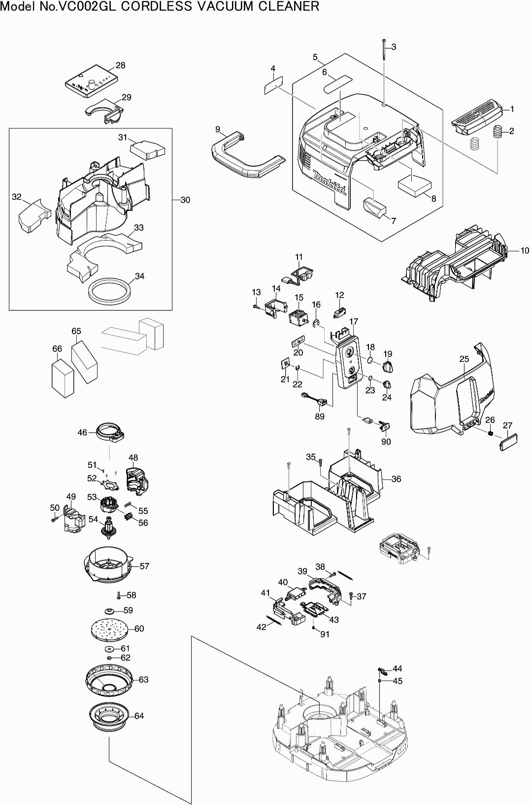 Liste de pièces de rechange des Makita VC002GLZ01