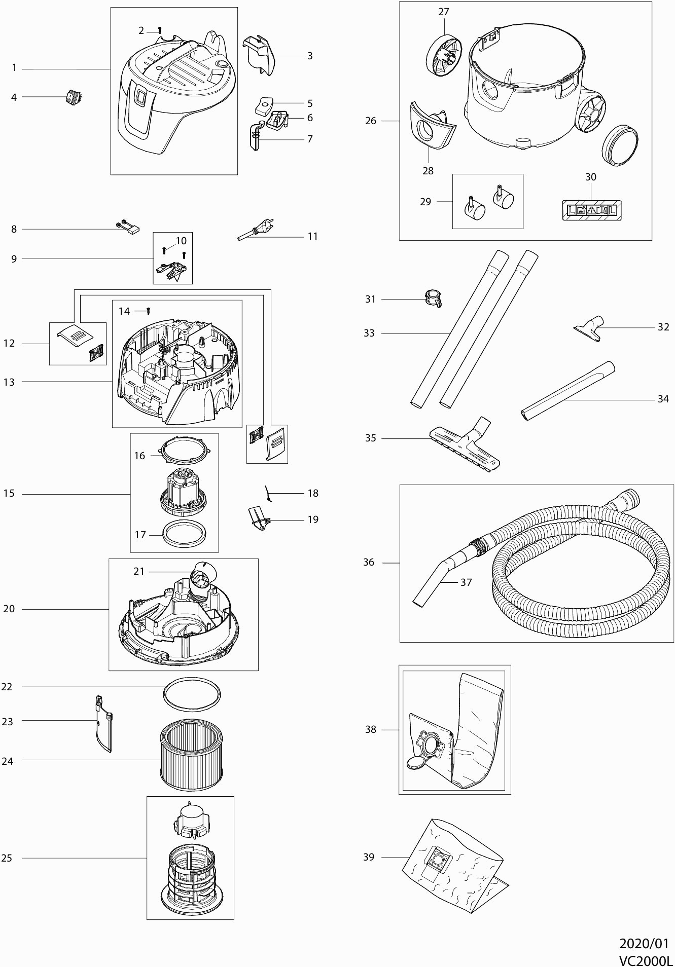 Vous trouverez ici toutes les pièces et dessins disponibles du 'Makita VC2000L'. De là, vous pouvez commander directement toutes les pièces souhaitées. De nombreuses pièces doivent être commandées auprès du fabricant, selon la marque, cela prend une à quatre semaines. Toutes les informations dont nous disposons se trouvent sur notre site Web, nous ne pouvons pas vous conseiller sur ce dont vous avez besoin, pour cela vous devrez retourner la machine pour réparation. Veuillez noter ce qui suit lors de la commande: