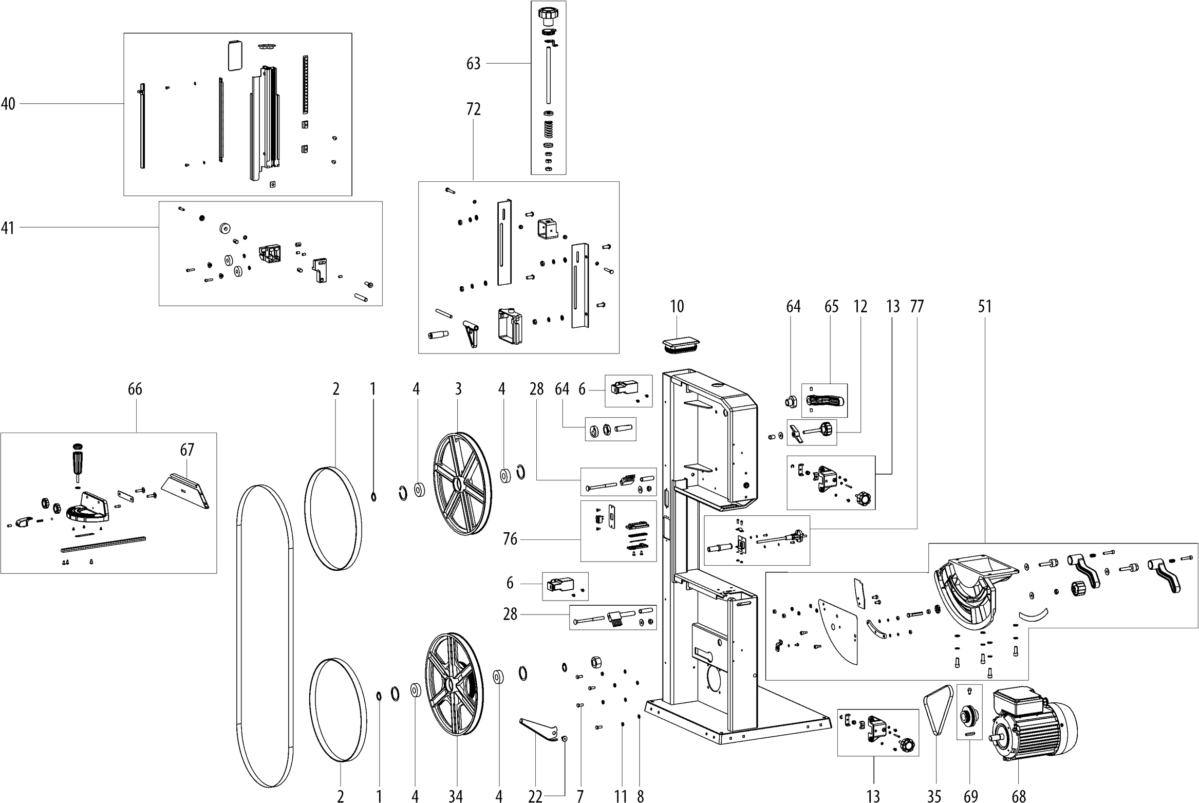 | Roue de scie à ruban au-dessus cpl. | ||||