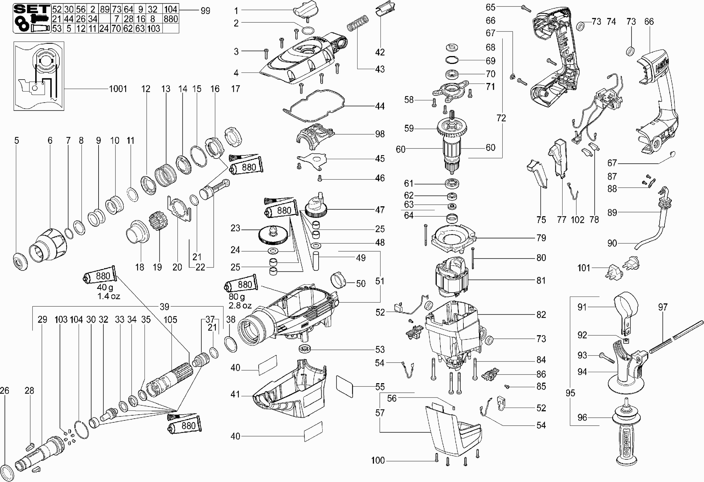 Liste de pièces de rechange des Metabo 00340001 ( KHE56 )