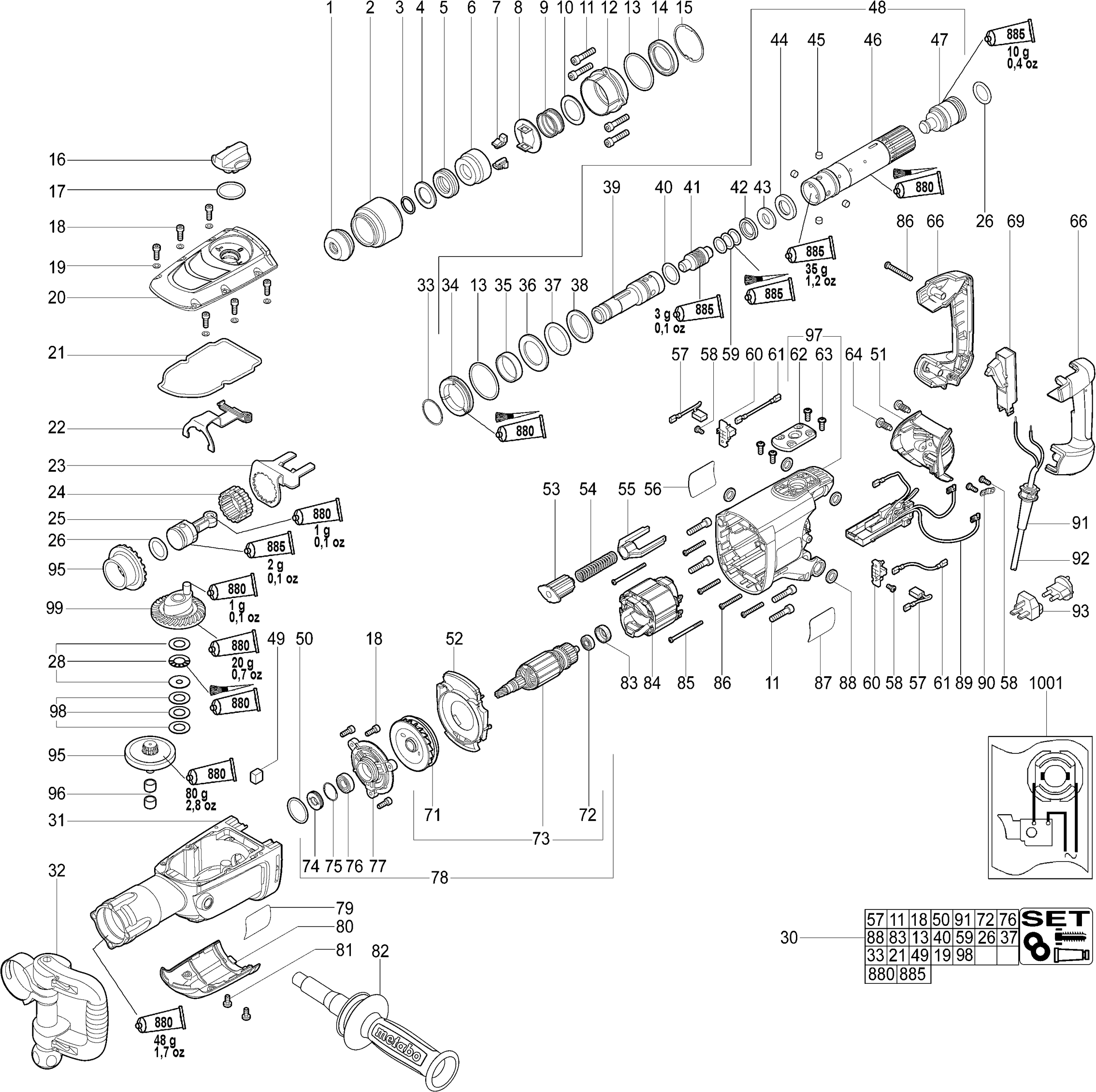 Vous trouverez ici toutes les pièces et dessins disponibles du 'Metabo 00596001 ( KHE96 )'. De là, vous pouvez commander directement toutes les pièces souhaitées. De nombreuses pièces doivent être commandées auprès du fabricant, selon la marque, cela prend une à quatre semaines. Toutes les informations dont nous disposons se trouvent sur notre site Web, nous ne pouvons pas vous conseiller sur ce dont vous avez besoin, pour cela vous devrez retourner la machine pour réparation. Veuillez noter ce qui suit lors de la commande: