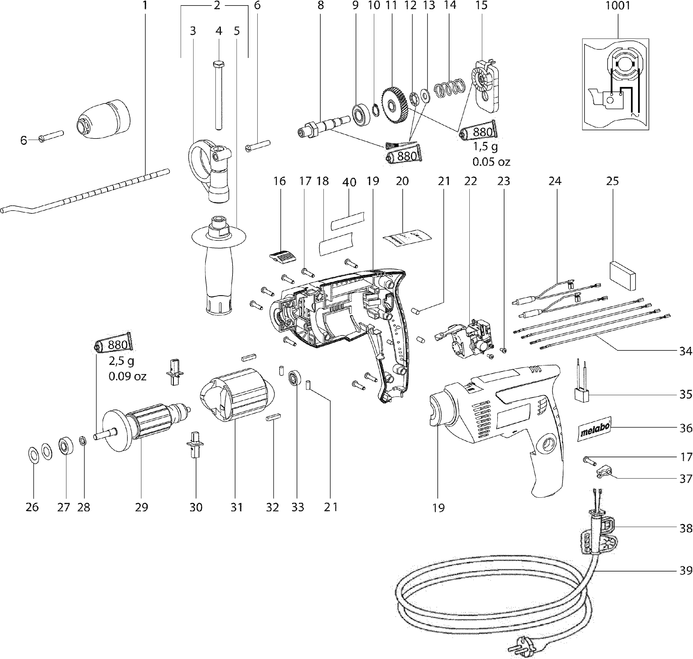 Liste de pièces de rechange des Metabo 00601000 ( SBE601 )