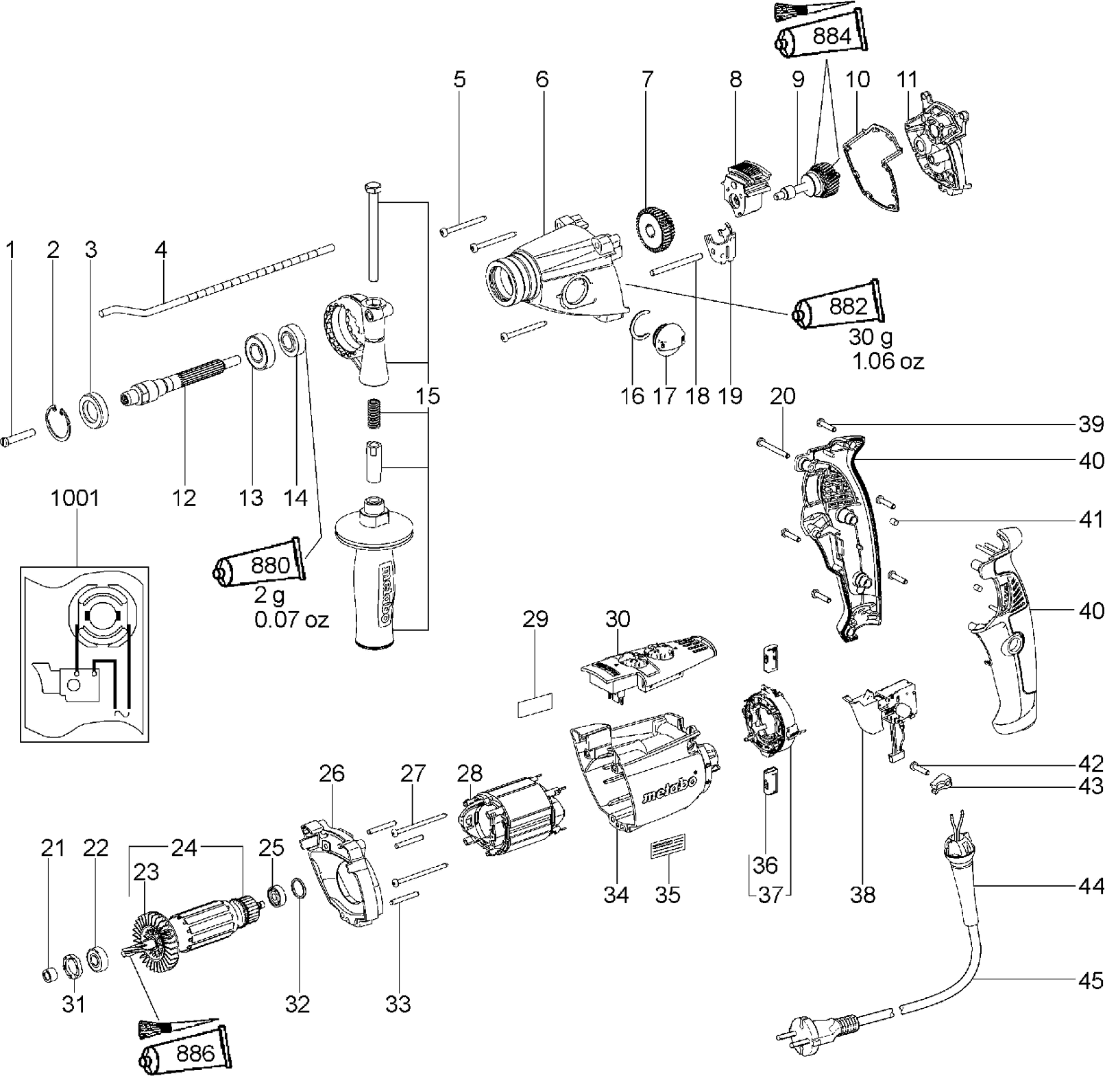 Vous trouverez ici toutes les pièces et dessins disponibles du 'Metabo 00865000 ( SBE900IMPULS )'. De là, vous pouvez commander directement toutes les pièces souhaitées. De nombreuses pièces doivent être commandées auprès du fabricant, selon la marque, cela prend une à quatre semaines. Toutes les informations dont nous disposons se trouvent sur notre site Web, nous ne pouvons pas vous conseiller sur ce dont vous avez besoin, pour cela vous devrez retourner la machine pour réparation. Veuillez noter ce qui suit lors de la commande: