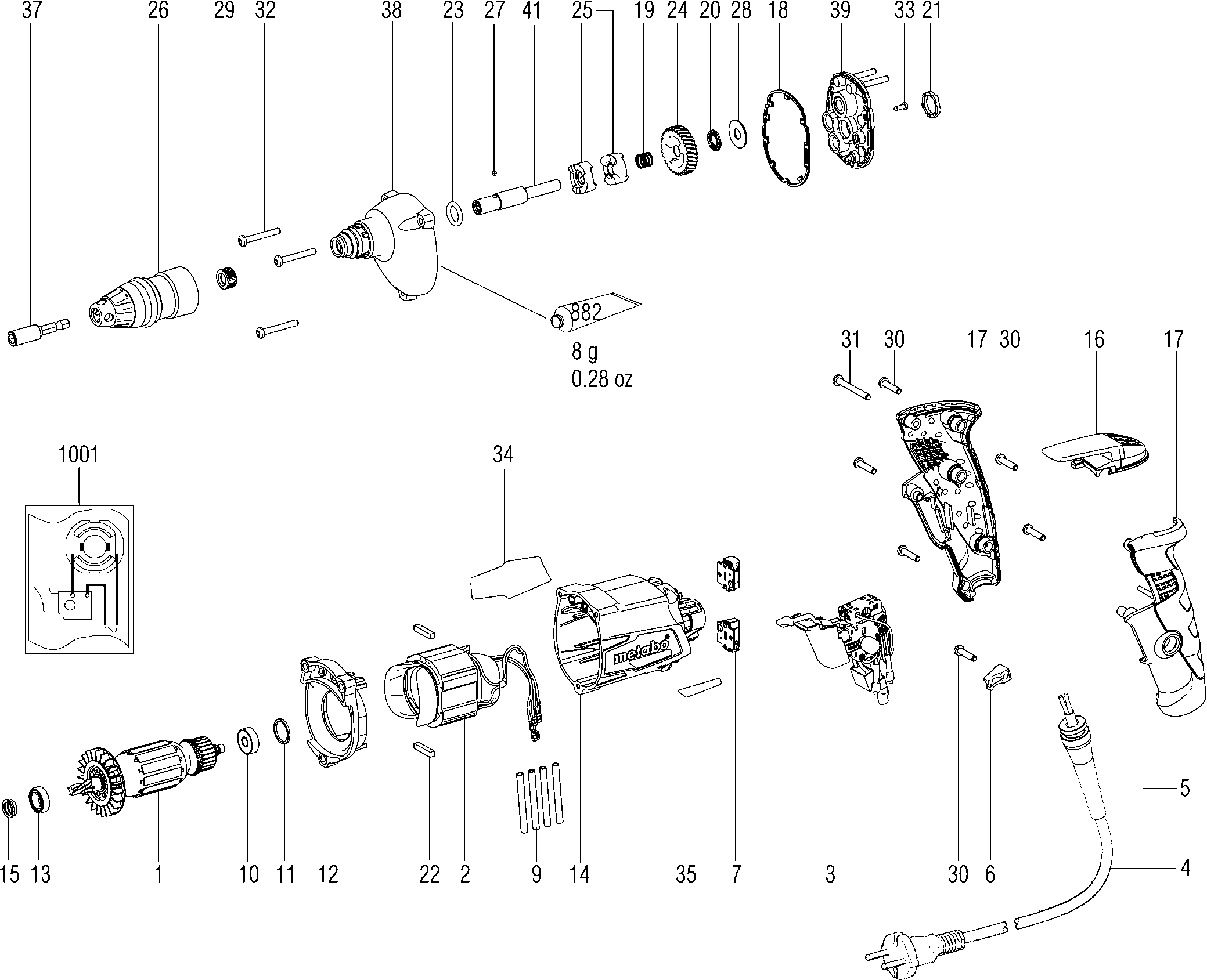 Vous trouverez ici toutes les pièces et dessins disponibles du 'Metabo 20045000 ( SE4000 )'. De là, vous pouvez commander directement toutes les pièces souhaitées. De nombreuses pièces doivent être commandées auprès du fabricant, selon la marque, cela prend une à quatre semaines. Toutes les informations dont nous disposons se trouvent sur notre site Web, nous ne pouvons pas vous conseiller sur ce dont vous avez besoin, pour cela vous devrez retourner la machine pour réparation. Veuillez noter ce qui suit lors de la commande: