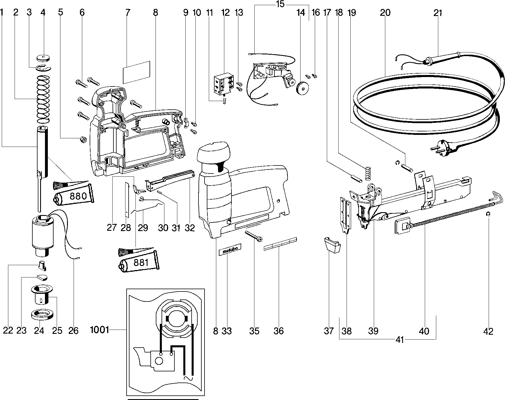 Vous trouverez ici toutes les pièces et dessins disponibles du 'Metabo 03030002 ( TAE3030 )'. De là, vous pouvez commander directement toutes les pièces souhaitées. De nombreuses pièces doivent être commandées auprès du fabricant, selon la marque, cela prend une à quatre semaines. Toutes les informations dont nous disposons se trouvent sur notre site Web, nous ne pouvons pas vous conseiller sur ce dont vous avez besoin, pour cela vous devrez retourner la machine pour réparation. Veuillez noter ce qui suit lors de la commande: