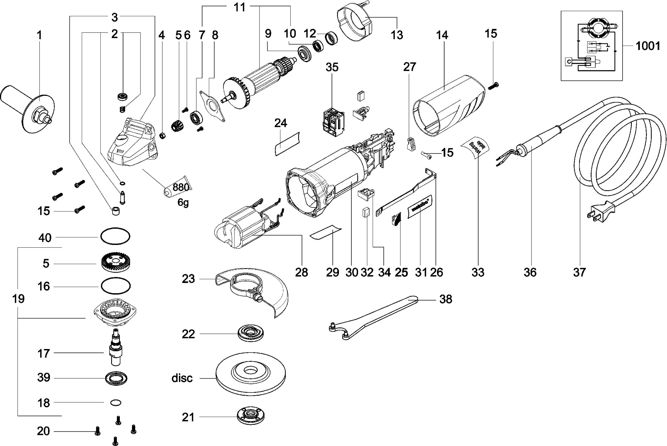 Liste de pièces de rechange des Metabo 01237010 ( W1100-125 )