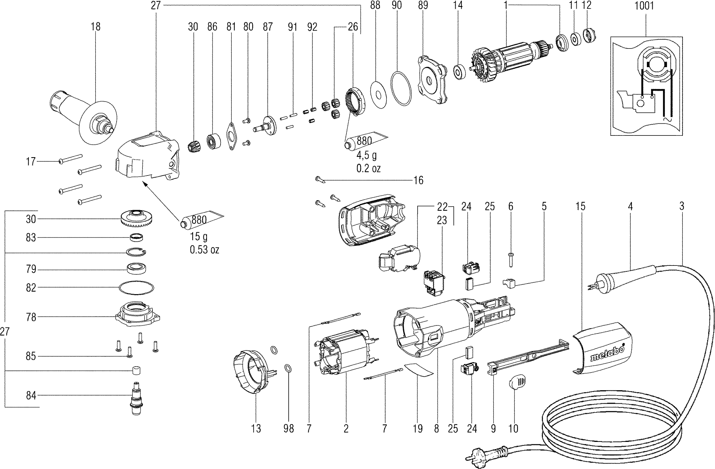 Vous trouverez ici toutes les pièces et dessins disponibles du 'Metabo 00512001 ( WBE700 )'. De là, vous pouvez commander directement toutes les pièces souhaitées. De nombreuses pièces doivent être commandées auprès du fabricant, selon la marque, cela prend une à quatre semaines. Toutes les informations dont nous disposons se trouvent sur notre site Web, nous ne pouvons pas vous conseiller sur ce dont vous avez besoin, pour cela vous devrez retourner la machine pour réparation. Veuillez noter ce qui suit lors de la commande: