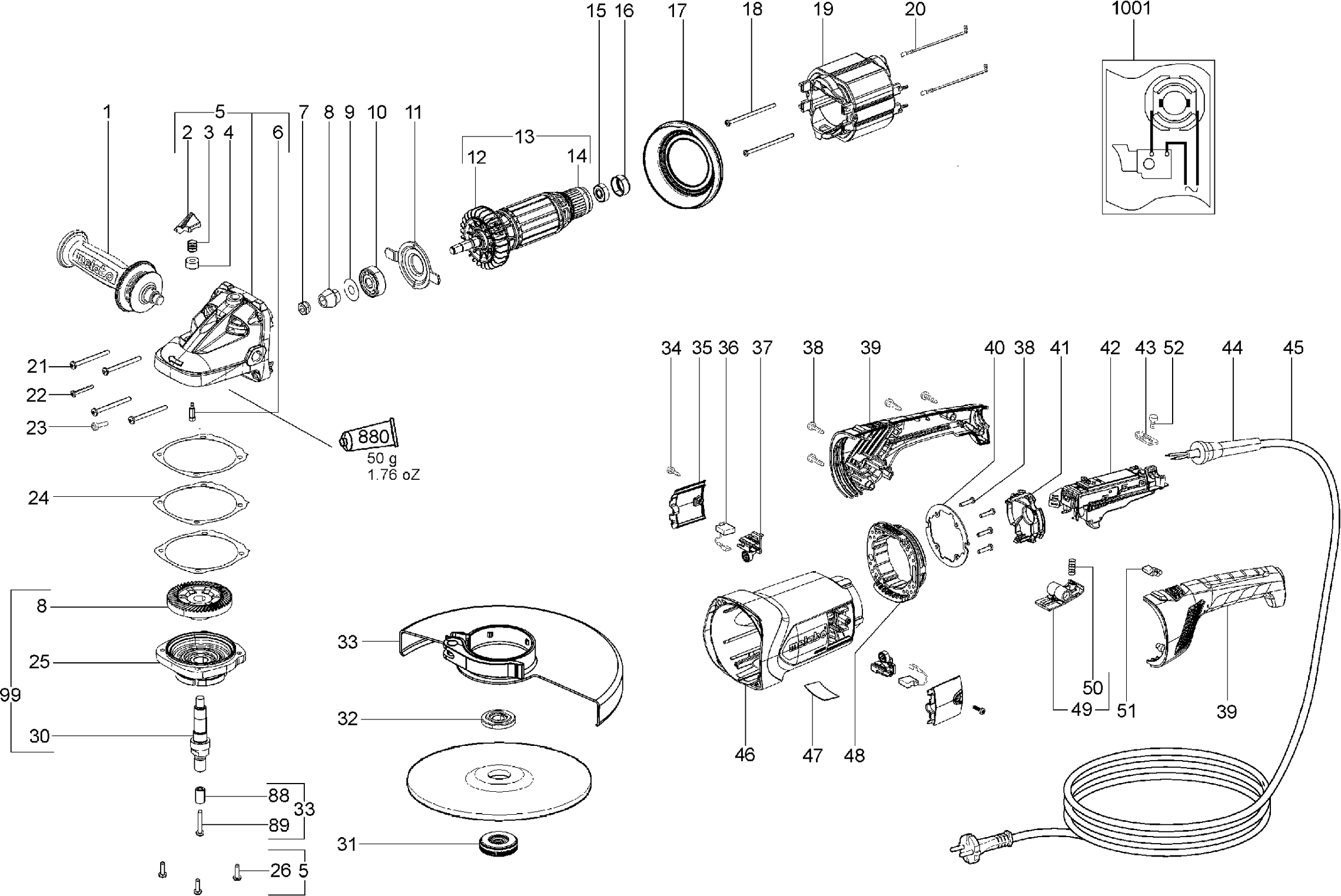 Vous trouverez ici toutes les pièces et dessins disponibles du 'Metabo 06465000 ( WE22-230MVTQUICK )'. De là, vous pouvez commander directement toutes les pièces souhaitées. De nombreuses pièces doivent être commandées auprès du fabricant, selon la marque, cela prend une à quatre semaines. Toutes les informations dont nous disposons se trouvent sur notre site Web, nous ne pouvons pas vous conseiller sur ce dont vous avez besoin, pour cela vous devrez retourner la machine pour réparation. Veuillez noter ce qui suit lors de la commande: