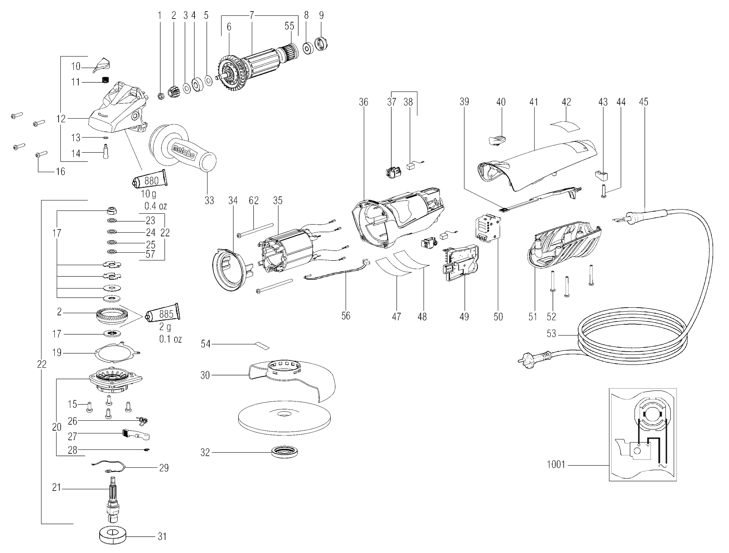 Vous trouverez ici toutes les pièces et dessins disponibles du 'Metabo 01106000 ( WEA14-150PLUS )'. De là, vous pouvez commander directement toutes les pièces souhaitées. De nombreuses pièces doivent être commandées auprès du fabricant, selon la marque, cela prend une à quatre semaines. Toutes les informations dont nous disposons se trouvent sur notre site Web, nous ne pouvons pas vous conseiller sur ce dont vous avez besoin, pour cela vous devrez retourner la machine pour réparation. Veuillez noter ce qui suit lors de la commande: