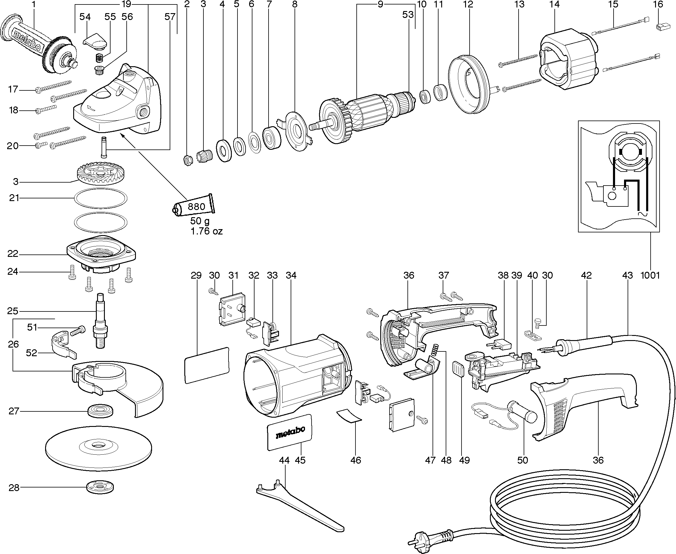 Vous trouverez ici toutes les pièces et dessins disponibles du 'Metabo 06406000 ( WX21-230 )'. De là, vous pouvez commander directement toutes les pièces souhaitées. De nombreuses pièces doivent être commandées auprès du fabricant, selon la marque, cela prend une à quatre semaines. Toutes les informations dont nous disposons se trouvent sur notre site Web, nous ne pouvons pas vous conseiller sur ce dont vous avez besoin, pour cela vous devrez retourner la machine pour réparation. Veuillez noter ce qui suit lors de la commande: