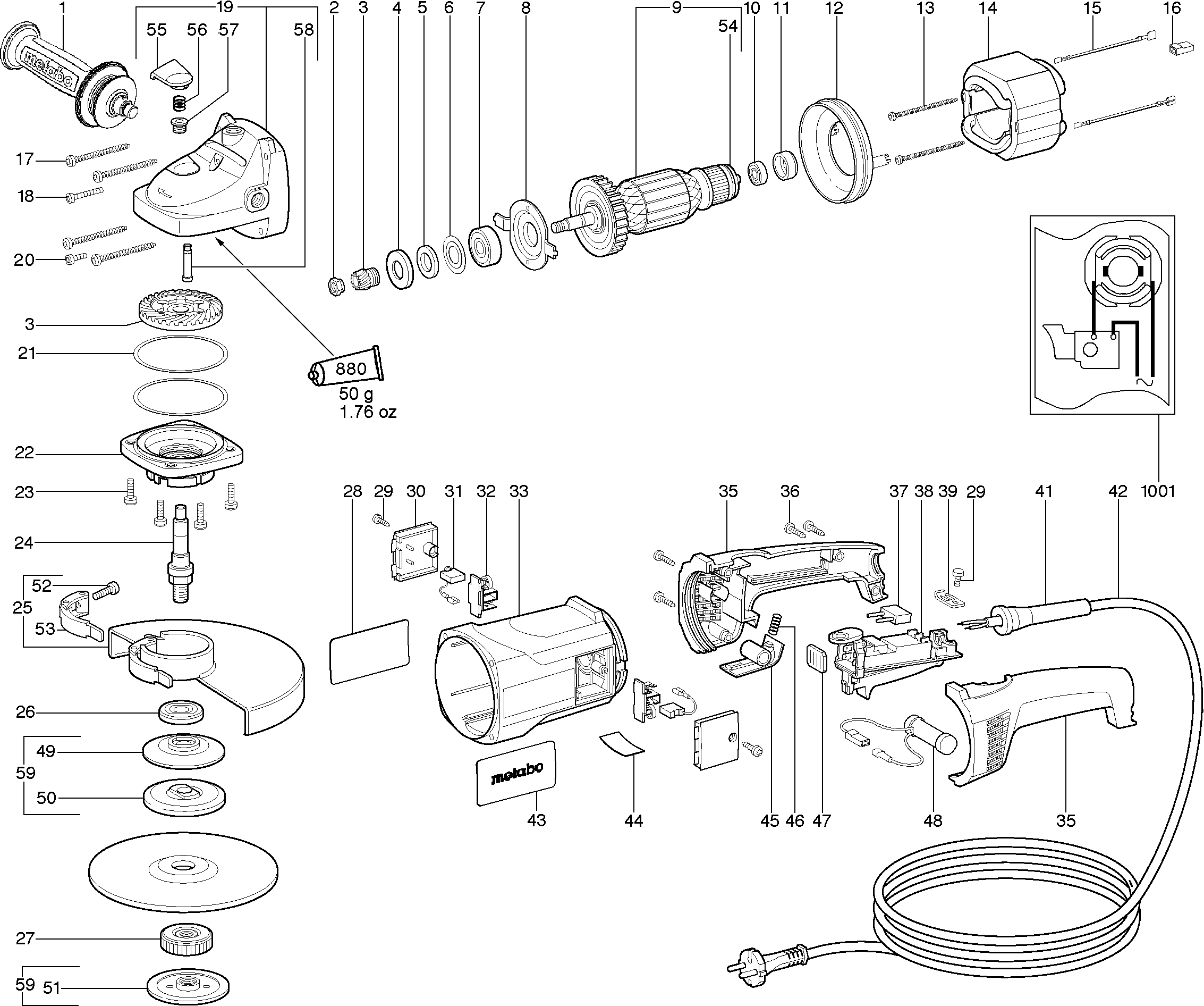 Vous trouverez ici toutes les pièces et dessins disponibles du 'Metabo 06417000 ( WX23-230QUICK )'. De là, vous pouvez commander directement toutes les pièces souhaitées. De nombreuses pièces doivent être commandées auprès du fabricant, selon la marque, cela prend une à quatre semaines. Toutes les informations dont nous disposons se trouvent sur notre site Web, nous ne pouvons pas vous conseiller sur ce dont vous avez besoin, pour cela vous devrez retourner la machine pour réparation. Veuillez noter ce qui suit lors de la commande: