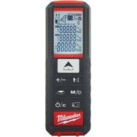 Richt- en meetsysteem - één persoon meet met slechts een simpele druk op de knop. Uiterst slanke behuizing met riemclip voor gemakkelijk transport. Meten van oppervlakken / volumes / indirecte hoogtes & breedtes. Min. / Max. afstands- & duurmetingen (tracking). Afstand optellen & aftrekken voor layouting. Indirecte hoogtemetingen (Pythagoras 2-punts, 3-punts). Grote in 3 regels leesbare LCD grafische display met witte achtergrondverlichting. Uitklapbaar eindstuk voor het meten vanuit hoeken. Geheugenfunctie voor de laatste 20 metingen. IP54 water- en stofbestendig. Automatische uitschakeling en alarmsignaal bij lage batterijcapaciteit. Metrische units voor alleen meten.