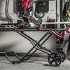 De vergrendeling is gemakkelijk met de voet te bedienen en dankzij het enkele hef punt kan het onderstel inclusief de zaag worden opgezet of worden opgeruimd