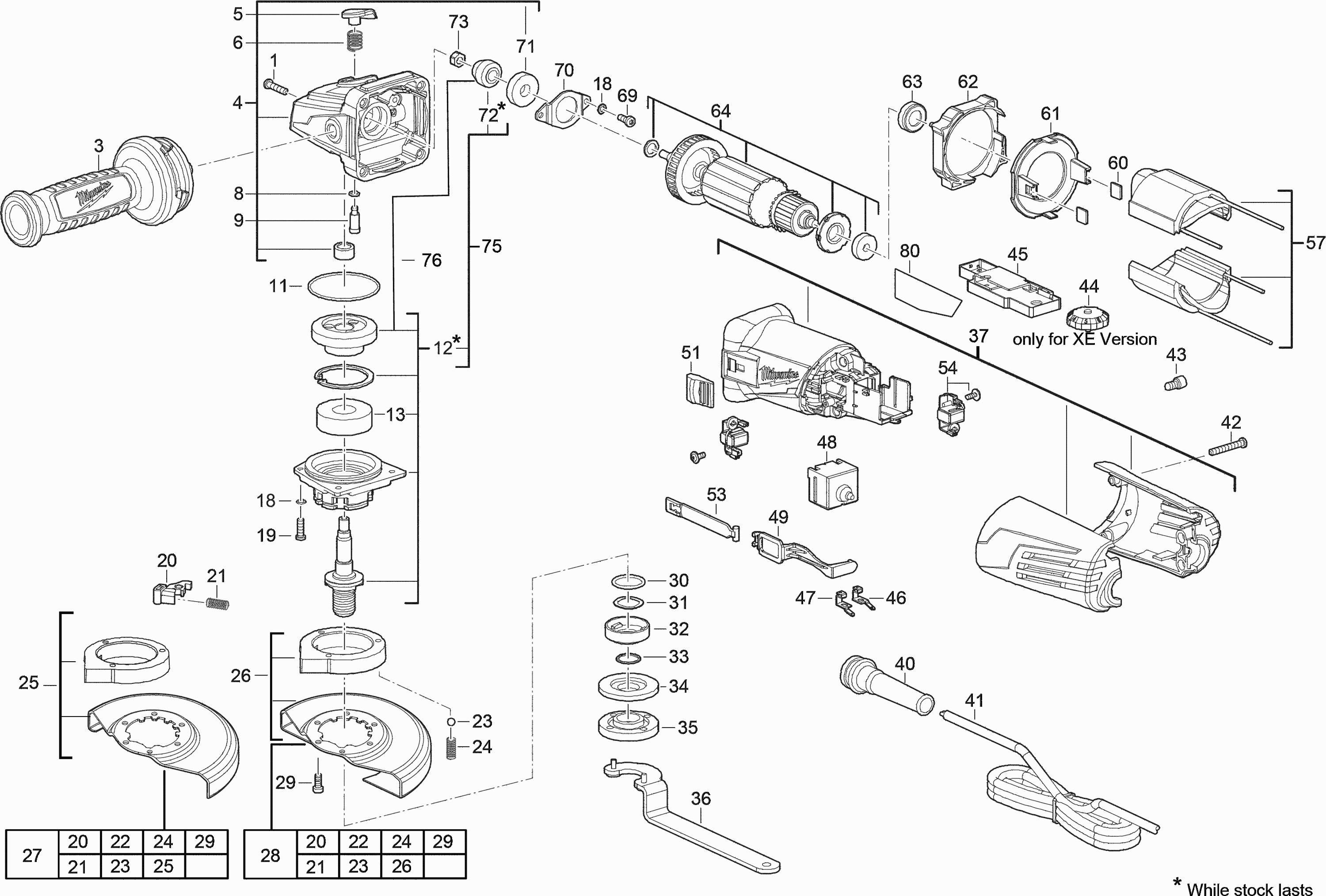Vous trouverez ici toutes les pièces et dessins disponibles du 'Milwaukee 4000428121 ( AGV15-125XC )'. De là, vous pouvez commander directement toutes les pièces souhaitées. De nombreuses pièces doivent être commandées auprès du fabricant, selon la marque, cela prend une à quatre semaines. Toutes les informations dont nous disposons se trouvent sur notre site Web, nous ne pouvons pas vous conseiller sur ce dont vous avez besoin, pour cela vous devrez retourner la machine pour réparation. Veuillez noter ce qui suit lors de la commande:
