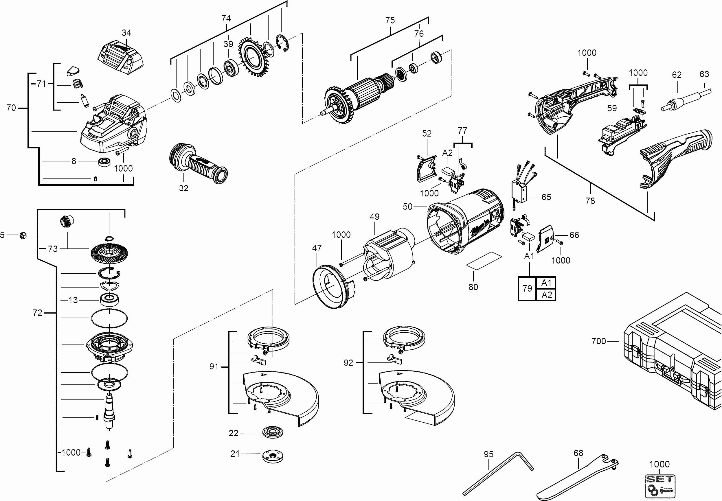 Vous trouverez ici toutes les pièces et dessins disponibles du 'Milwaukee 4000431861 ( AGV22-230DMS )'. De là, vous pouvez commander directement toutes les pièces souhaitées. De nombreuses pièces doivent être commandées auprès du fabricant, selon la marque, cela prend une à quatre semaines. Toutes les informations dont nous disposons se trouvent sur notre site Web, nous ne pouvons pas vous conseiller sur ce dont vous avez besoin, pour cela vous devrez retourner la machine pour réparation. Veuillez noter ce qui suit lors de la commande: