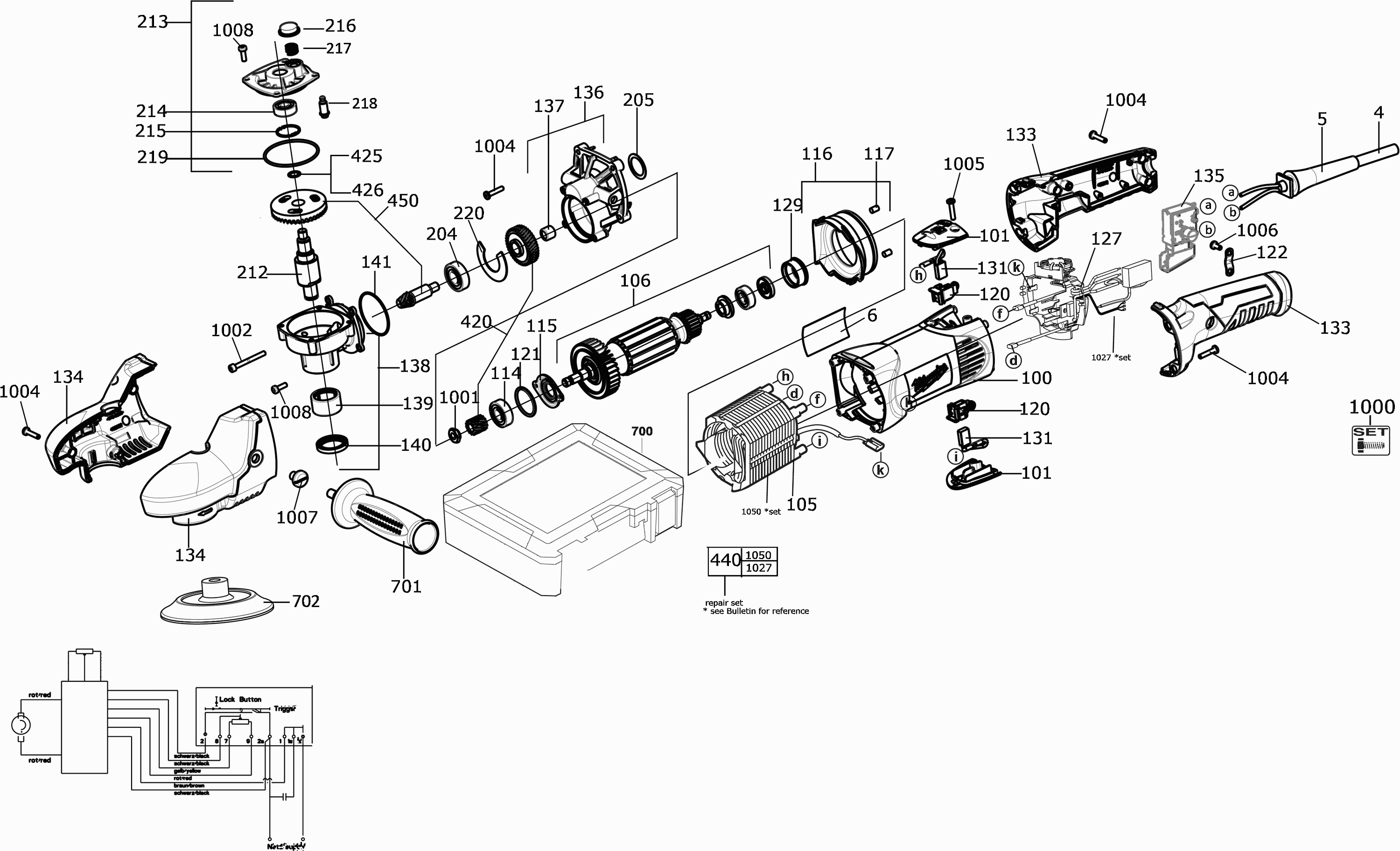 Vous trouverez ici toutes les pièces et dessins disponibles du 'Milwaukee 4000442351 ( AP14-2200EGB2 )'. De là, vous pouvez commander directement toutes les pièces souhaitées. De nombreuses pièces doivent être commandées auprès du fabricant, selon la marque, cela prend une à quatre semaines. Toutes les informations dont nous disposons se trouvent sur notre site Web, nous ne pouvons pas vous conseiller sur ce dont vous avez besoin, pour cela vous devrez retourner la machine pour réparation. Veuillez noter ce qui suit lors de la commande: