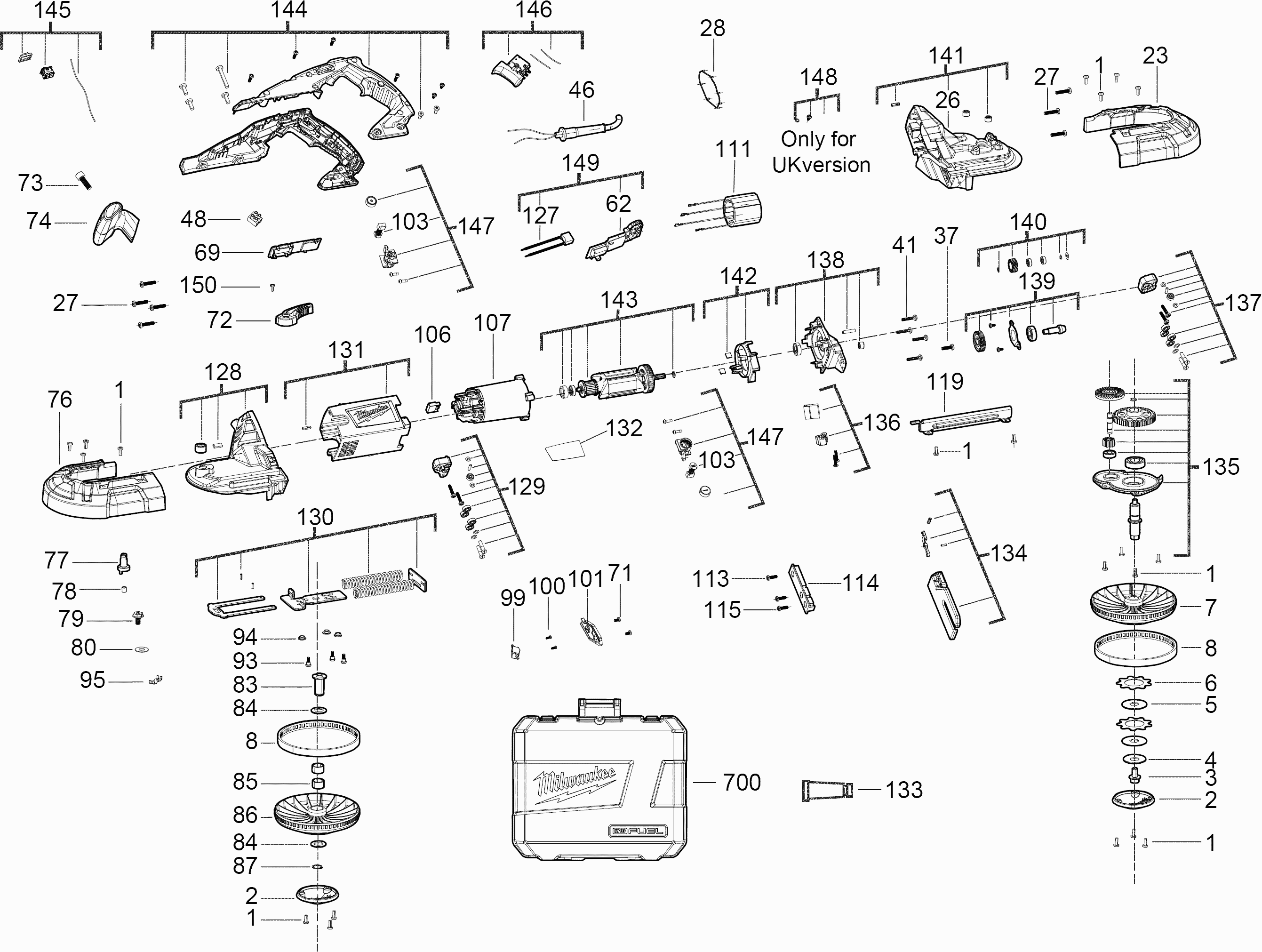 Liste de pièces de rechange des Milwaukee 4000448246 ( BS125220-240V )