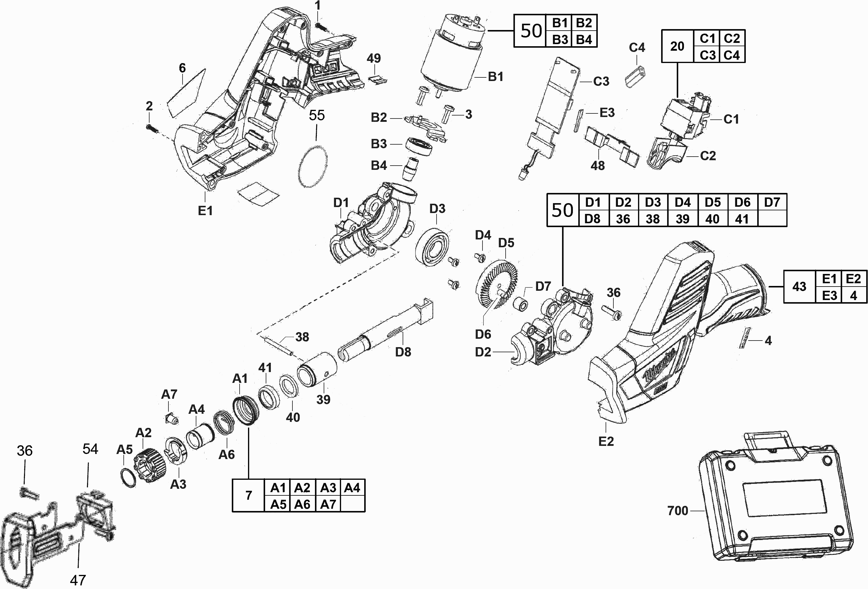 Vous trouverez ici toutes les pièces et dessins disponibles du 'Milwaukee 4000456787 ( C12HZ-0 )'. De là, vous pouvez commander directement toutes les pièces souhaitées. De nombreuses pièces doivent être commandées auprès du fabricant, selon la marque, cela prend une à quatre semaines. Toutes les informations dont nous disposons se trouvent sur notre site Web, nous ne pouvons pas vous conseiller sur ce dont vous avez besoin, pour cela vous devrez retourner la machine pour réparation. Veuillez noter ce qui suit lors de la commande:
