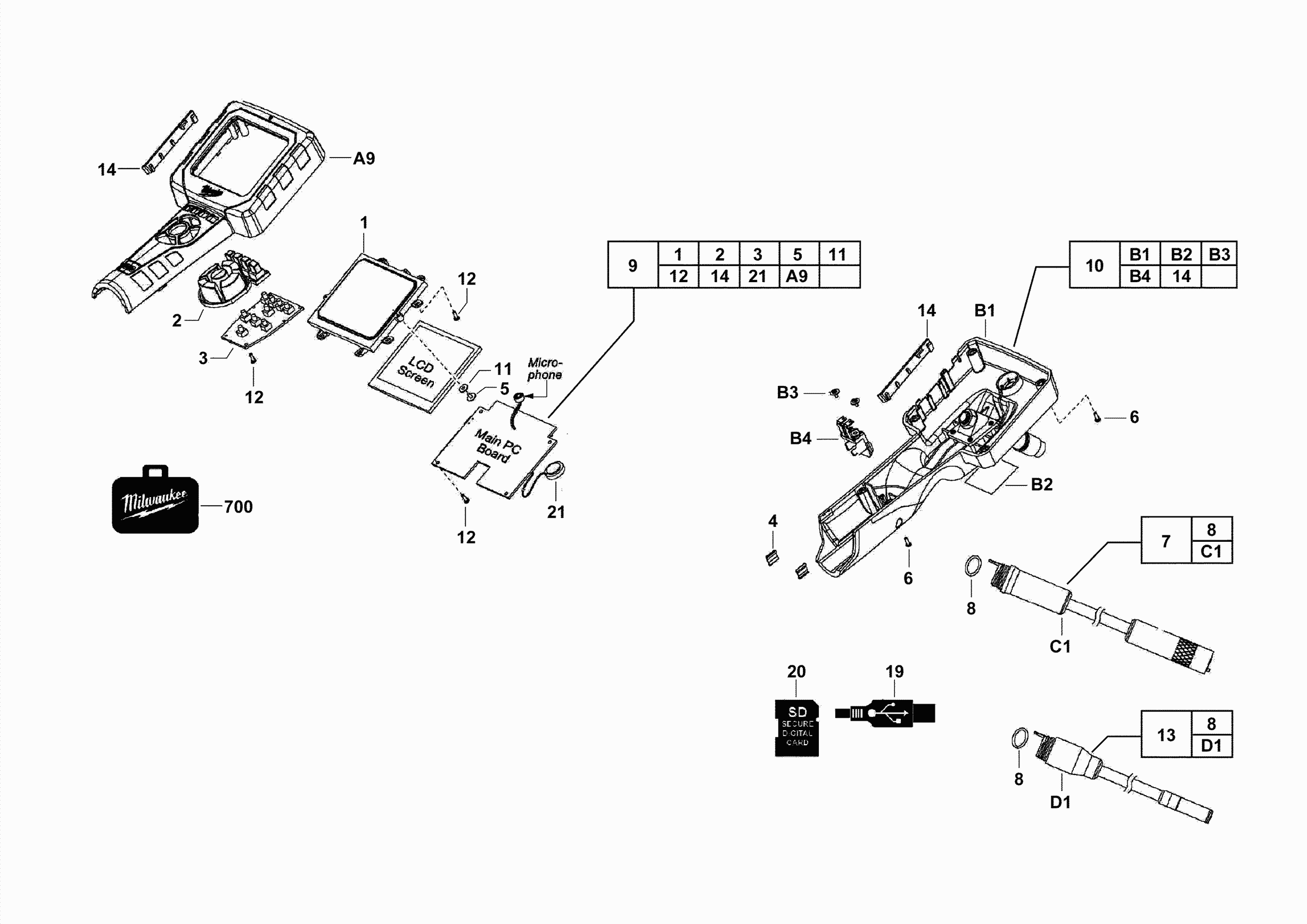 Vous trouverez ici toutes les pièces et dessins disponibles du 'Milwaukee 4000416671 ( C12ICAVD-21CIN2 )'. De là, vous pouvez commander directement toutes les pièces souhaitées. De nombreuses pièces doivent être commandées auprès du fabricant, selon la marque, cela prend une à quatre semaines. Toutes les informations dont nous disposons se trouvent sur notre site Web, nous ne pouvons pas vous conseiller sur ce dont vous avez besoin, pour cela vous devrez retourner la machine pour réparation. Veuillez noter ce qui suit lors de la commande: