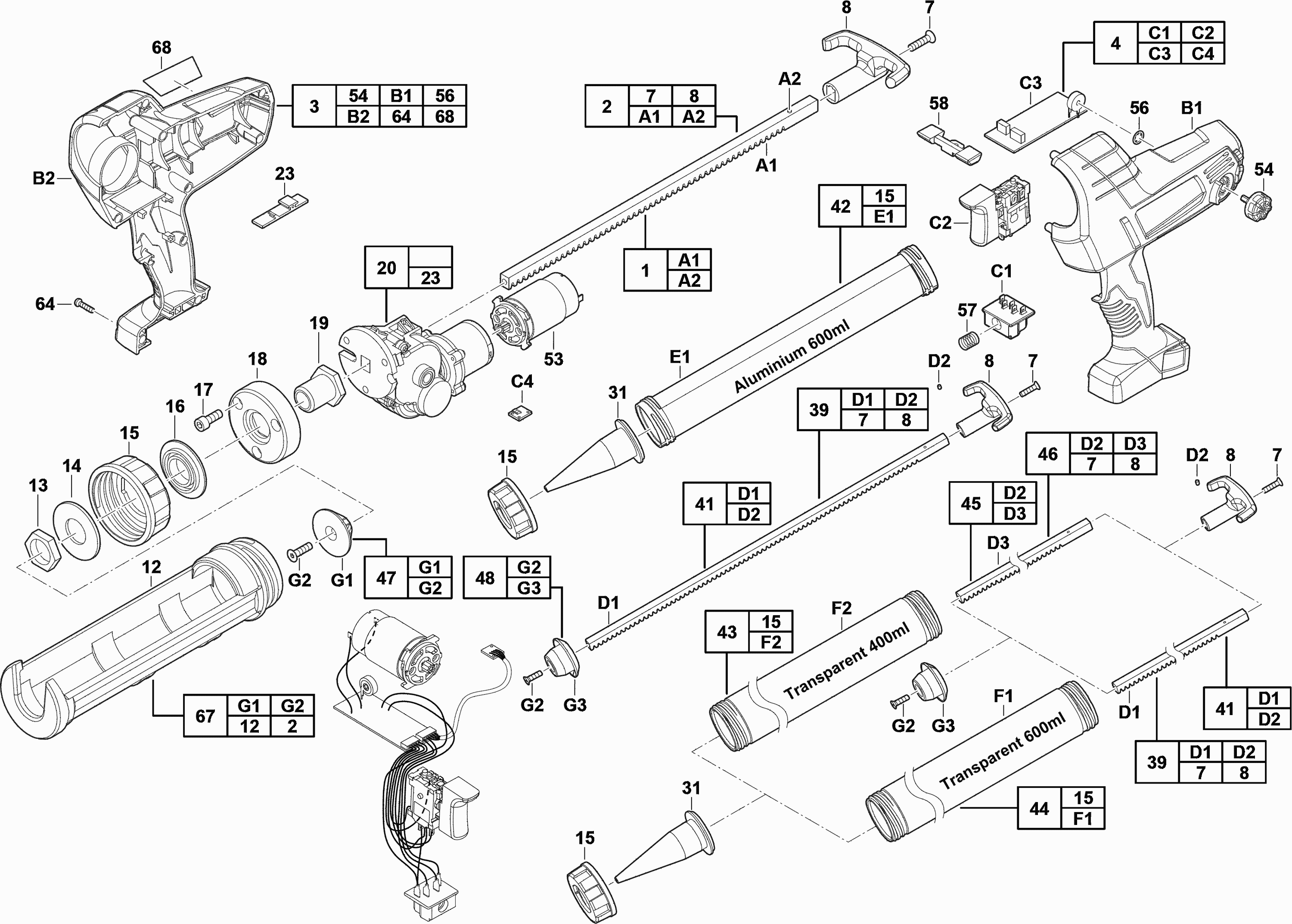 Liste de pièces de rechange des Milwaukee 4000431581 ( C18PCG/310C-0B )