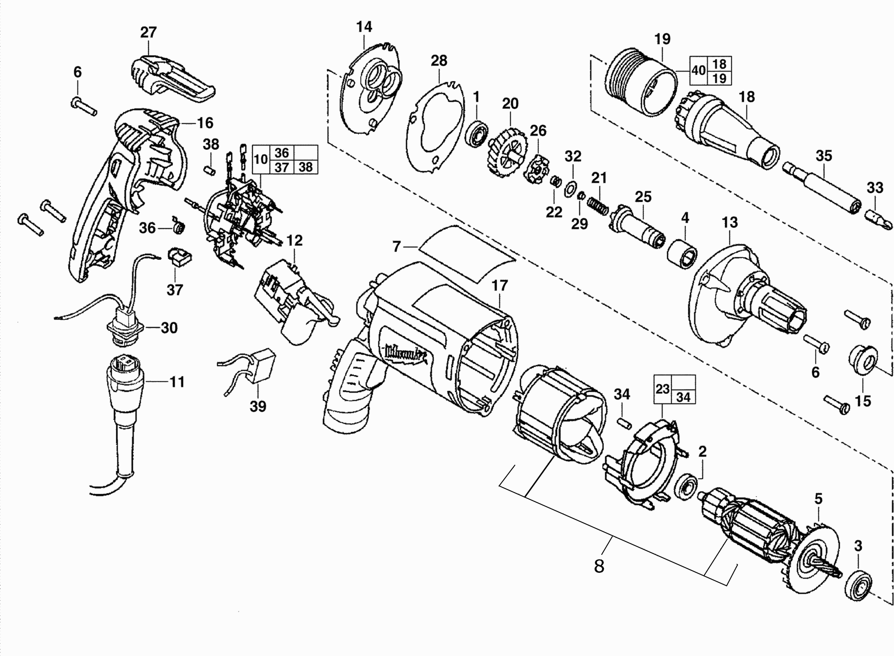 Vous trouverez ici toutes les pièces et dessins disponibles du 'Milwaukee 4000752030 ( DWSE4000Q )'. De là, vous pouvez commander directement toutes les pièces souhaitées. De nombreuses pièces doivent être commandées auprès du fabricant, selon la marque, cela prend une à quatre semaines. Toutes les informations dont nous disposons se trouvent sur notre site Web, nous ne pouvons pas vous conseiller sur ce dont vous avez besoin, pour cela vous devrez retourner la machine pour réparation. Veuillez noter ce qui suit lors de la commande: