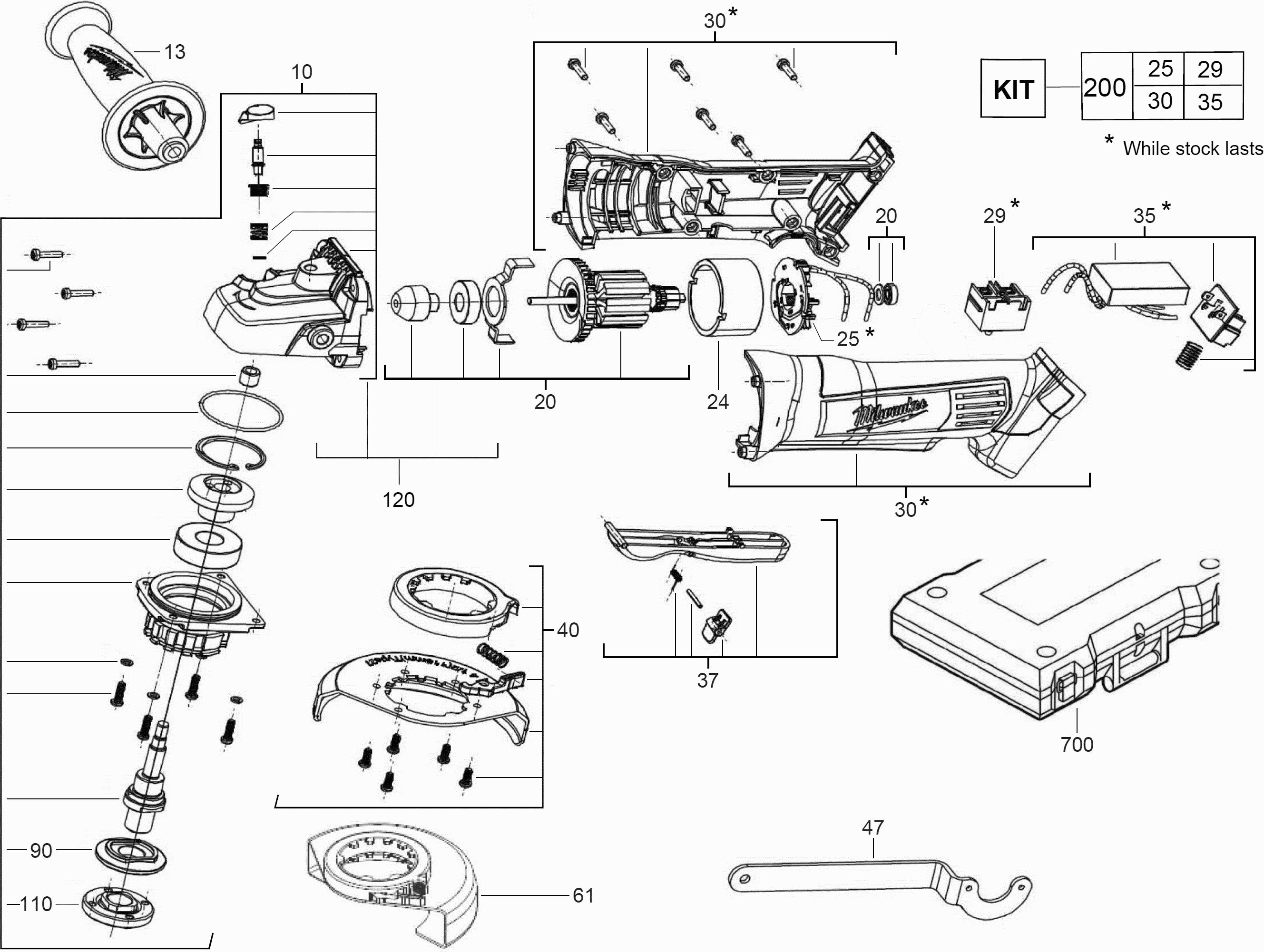 Vous trouverez ici toutes les pièces et dessins disponibles du 'Milwaukee 4000431373 ( HD18AG115-0 )'. De là, vous pouvez commander directement toutes les pièces souhaitées. De nombreuses pièces doivent être commandées auprès du fabricant, selon la marque, cela prend une à quatre semaines. Toutes les informations dont nous disposons se trouvent sur notre site Web, nous ne pouvons pas vous conseiller sur ce dont vous avez besoin, pour cela vous devrez retourner la machine pour réparation. Veuillez noter ce qui suit lors de la commande: