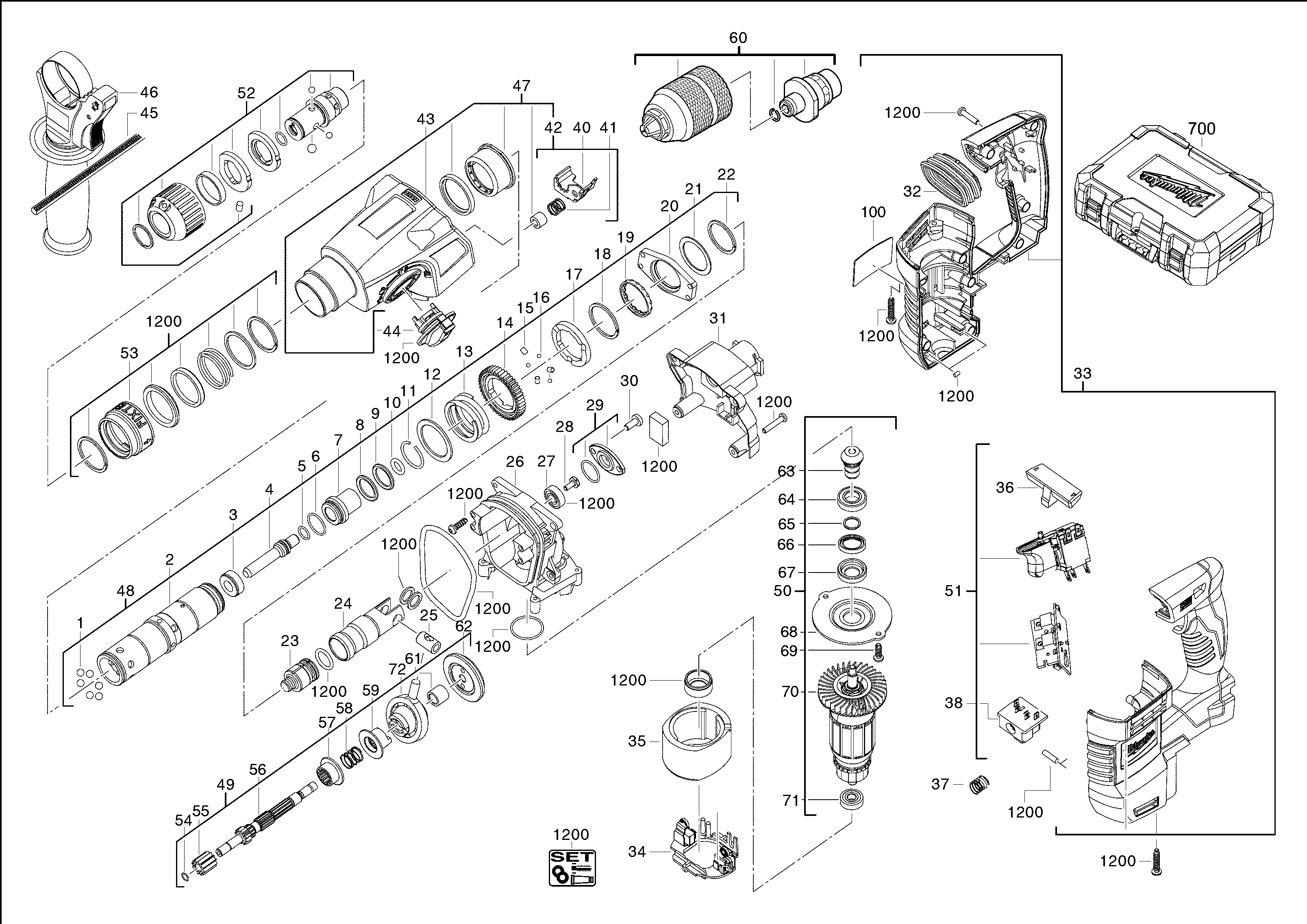 Vous trouverez ici toutes les pièces et dessins disponibles du 'Milwaukee 4000447206 ( HD18HX-0 )'. De là, vous pouvez commander directement toutes les pièces souhaitées. De nombreuses pièces doivent être commandées auprès du fabricant, selon la marque, cela prend une à quatre semaines. Toutes les informations dont nous disposons se trouvent sur notre site Web, nous ne pouvons pas vous conseiller sur ce dont vous avez besoin, pour cela vous devrez retourner la machine pour réparation. Veuillez noter ce qui suit lors de la commande: