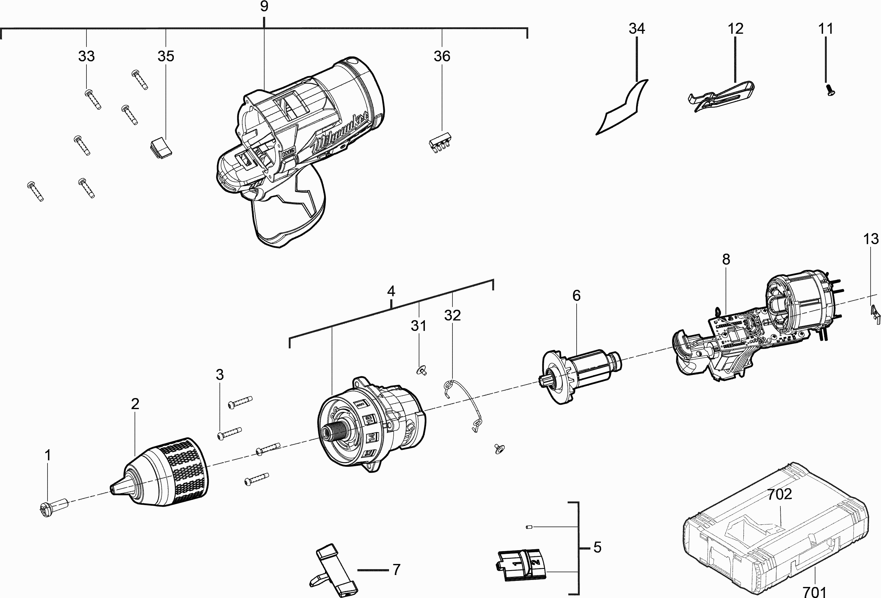 Liste de pièces de rechange des Milwaukee 4000467000 ( M12FDD-0 )