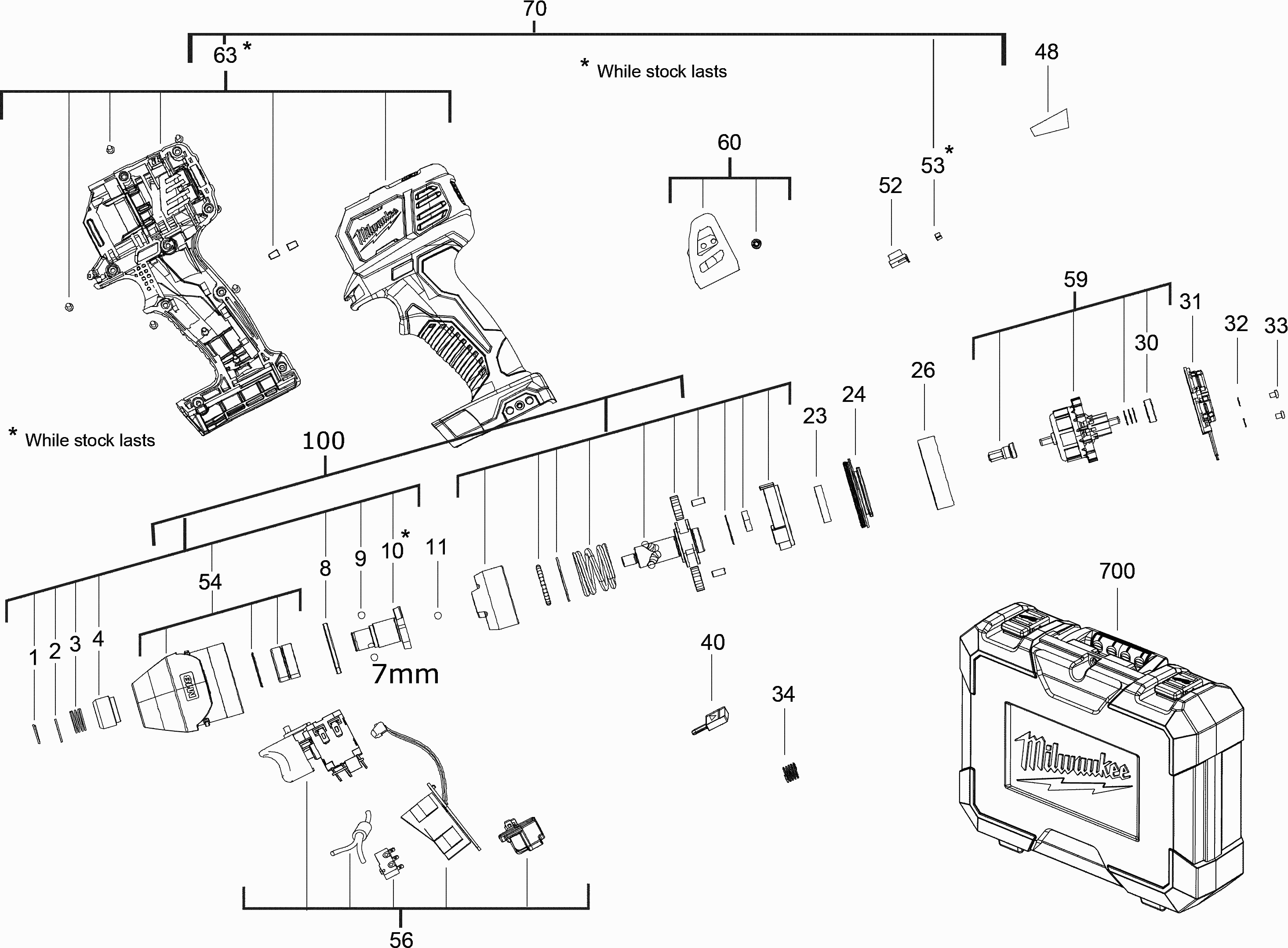 Vous trouverez ici toutes les pièces et dessins disponibles du 'Milwaukee 4000443571 ( M18BID-0 )'. De là, vous pouvez commander directement toutes les pièces souhaitées. De nombreuses pièces doivent être commandées auprès du fabricant, selon la marque, cela prend une à quatre semaines. Toutes les informations dont nous disposons se trouvent sur notre site Web, nous ne pouvons pas vous conseiller sur ce dont vous avez besoin, pour cela vous devrez retourner la machine pour réparation. Veuillez noter ce qui suit lors de la commande: