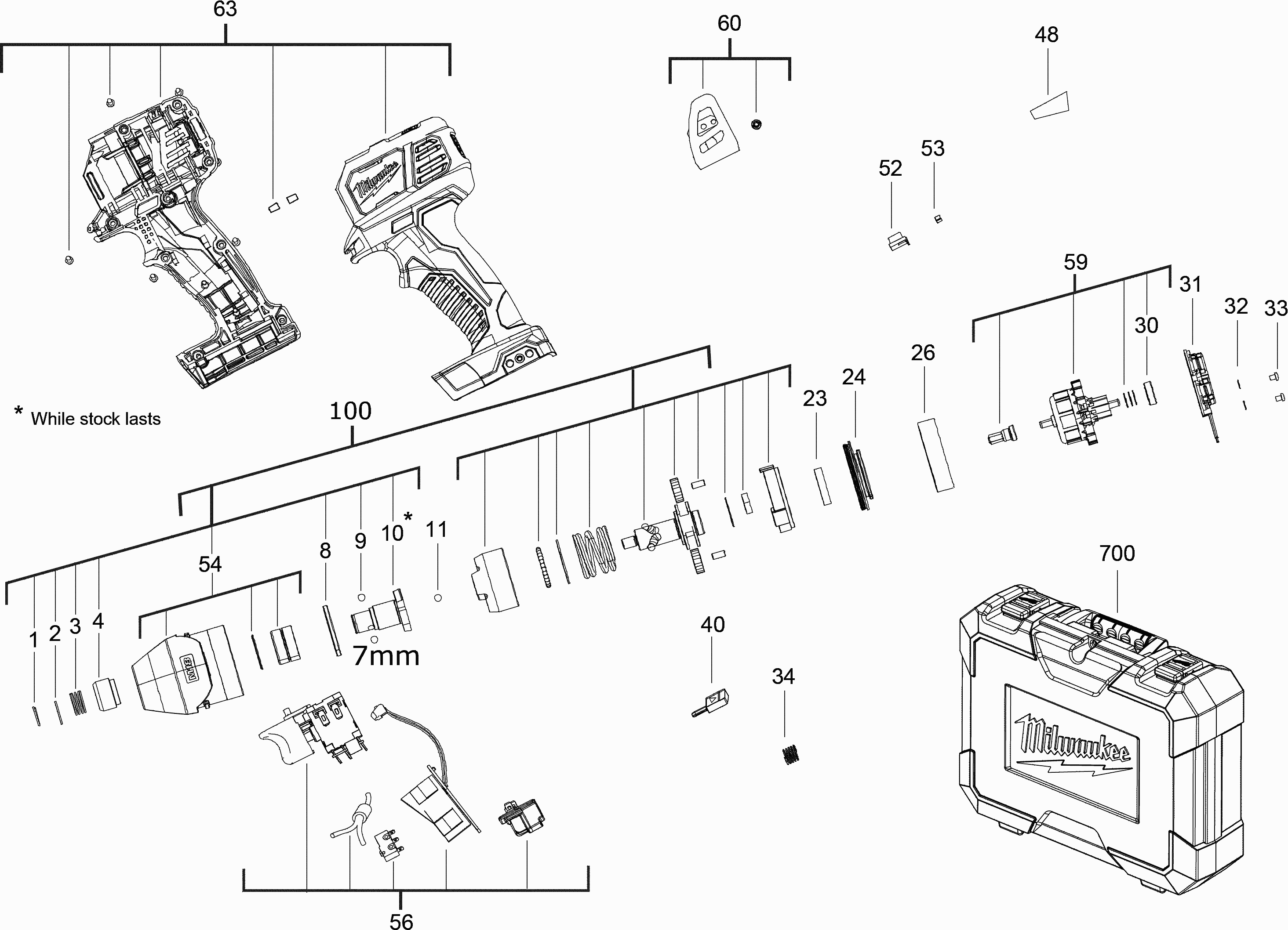Vous trouverez ici toutes les pièces et dessins disponibles du 'Milwaukee 4000452907 ( M18BID-0 )'. De là, vous pouvez commander directement toutes les pièces souhaitées. De nombreuses pièces doivent être commandées auprès du fabricant, selon la marque, cela prend une à quatre semaines. Toutes les informations dont nous disposons se trouvent sur notre site Web, nous ne pouvons pas vous conseiller sur ce dont vous avez besoin, pour cela vous devrez retourner la machine pour réparation. Veuillez noter ce qui suit lors de la commande: